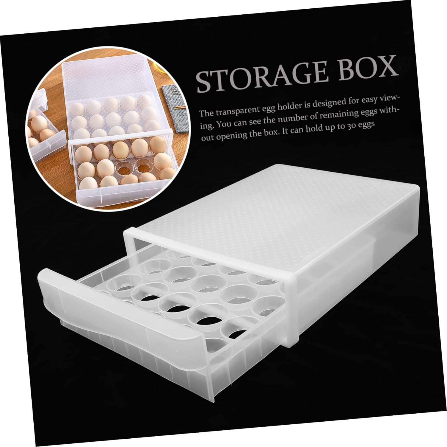 Package List 1 x egg storage box Characteristics -Color:Transparent egg container -Note: This storage box can store 30 eggs egg storage container for refrigerator. -Material:Plastic, polypropylene refrigerator egg container -Size:35.00X26.00X8.00cm/13.76X10.22X3.14in refrigerator egg organizer -Egg containers make your home look neater and warmer, saving your kitchen and refrigerator storage space egg drawer for refrigerator. -This versatile egg tray is the for organizing your refrigerator egg storage container. -Tidy up your refrigerator to keep your eggs fresh and prevent it from being crushed or smashed multi-grid egg case. -Fine workmanship and creative appearance ensure its popularity and practicality egg case. -Large capacity, the egg storage container can be placed many eggs in each layer for storage egg case for home.Goods Informationegg holder Our drawer type refrigerator egg storage boxes are designed to provide you with a convenient, and add more structure to the way you store eggs and groceries, while helping reduce clutter and organize all your refrigerator essentials in an easy way