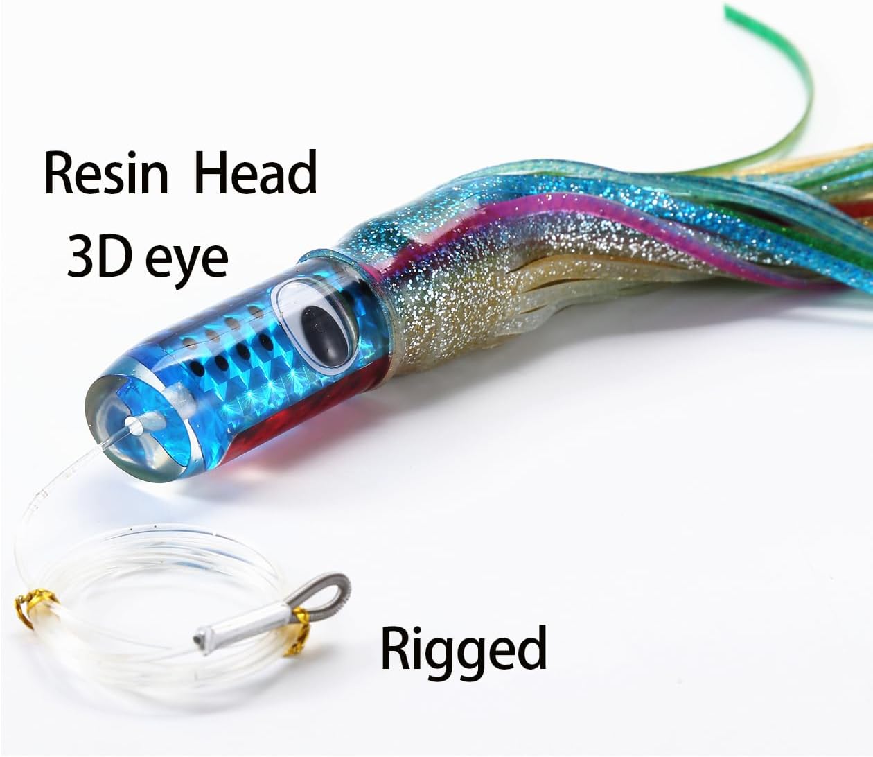 | Material | Acrylic Head, Leader, Plastic Skirt, Stainless Steel Hooks |
