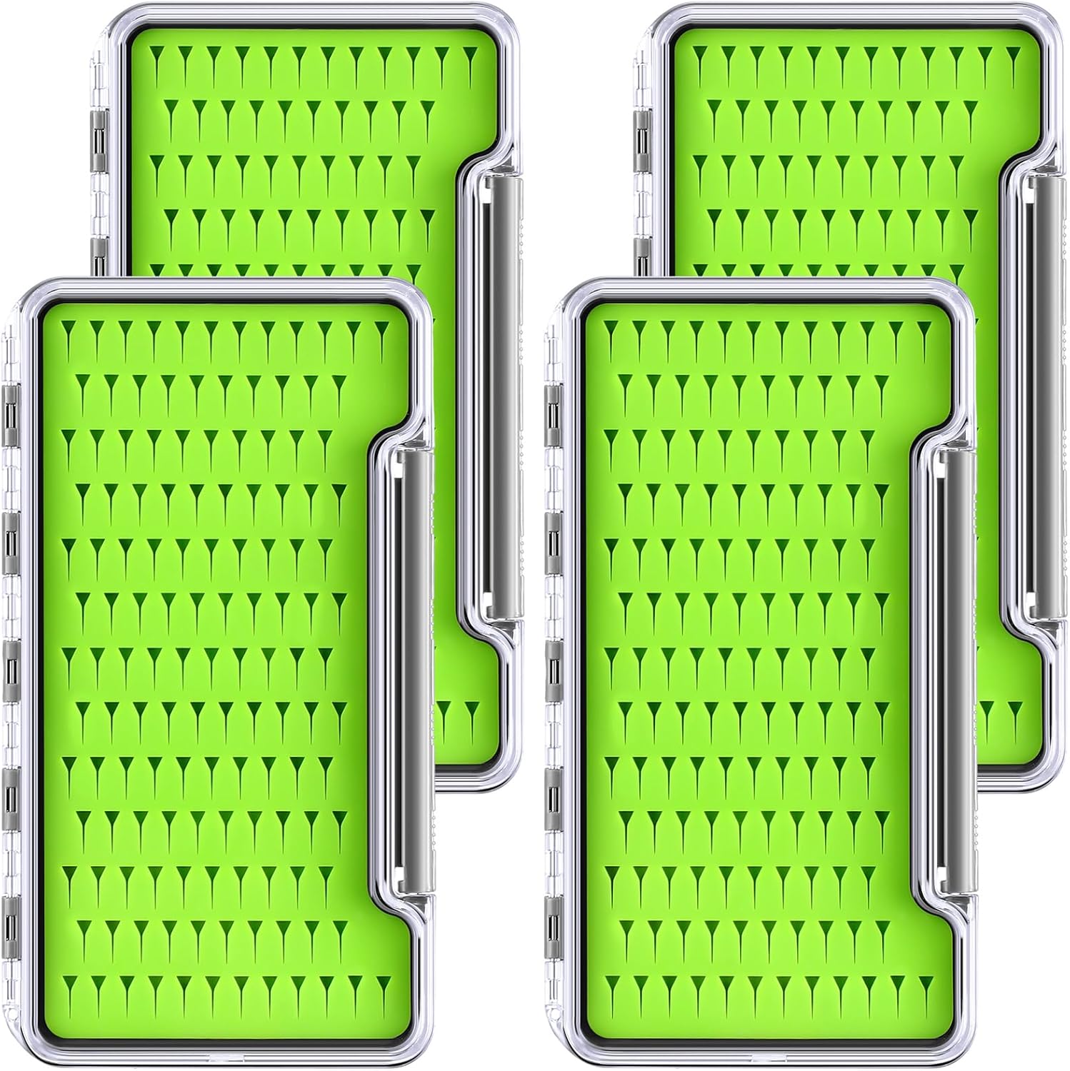 Features: The fly fishing tackle box is made of a silicone pad and ABS lid, compact, lightweight, and not waterproof. With a clear lid for easy identification, it holds 143 flies and comes in a pack of 8. Great for neat, organized, and convenient storage of your fishing flies. The lid of the not waterproof fly box adopts a transparent design, making it easy to observe the flies in the box. The lid is not waterproof, which can keep your flies dry and give you a good experience. Specifications: Main color: green pad, clear lid Main material: silicone pad, ABS lids Size: approx. 7.36"L x 0.63"W x 4.02"H Item weight: 139g Package includes: 8 x Fishing fly boxes Warm notes: Please allow slight deviation due to manual measurement. Please allow slight color differences due to different monitors.