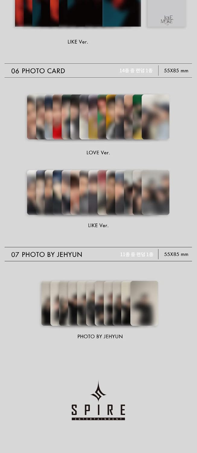 OMEGA X LOVE ME LIKE 2nd Mini Album-Album Contents- CD+100p Photo Book+1p Poster Calendar+1p Mini Poster +1p Photo Card+1p Photo By Jehyun+Free Tracking Number.Depending on versions , contents inside the album may differ."Officially distributed Brand New & Factory Sealed CD." "Your purchase quantity will be count on Korea HANTEO & GAON Chart!"Track List Disk(CD) 1. 01. LOVE ME LIKE 02. ACTION 03. 12.24 04. LIAR 05. 전화해요 (PLEASE)