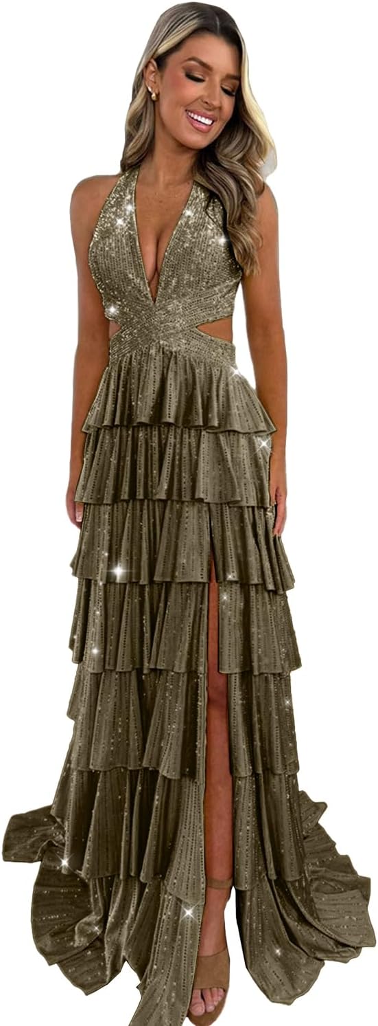 | Embellishment Feature | Ruffle Prom Dress for Women Long Slit Sequin Ball Gown Formal Evening Party, Women's Tiered Prom Dress Long Ball Gown A-Line Formal Evening Party Gowns |
