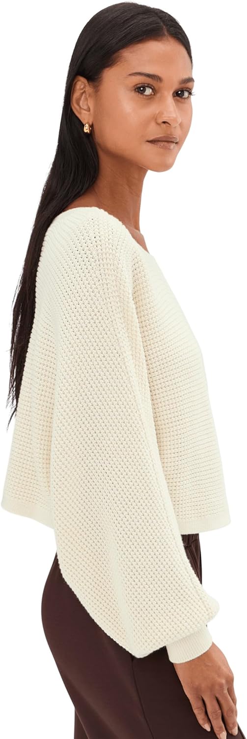Plie and pulse away, slip on the Ready For Barre Cropped Sweater by Beyond Yoga over your set for the studio or wear it as an everyday look to elevate any outfit with a dance-inspired twist. Designed with a textured waffle stitch, this sweater delivers breathable warmth with a luxe, lived-in feel you'll want to wear on repeat. The relaxed fit drapes beautifully, giving you easy movement and an effortlessly flattering silhouette, while the pull-on style keeps things simple and fuss-free. A wide bateau neckline adds a soft, feminine touch, perfectly framing the shoulders for that off-duty dancer aesthetic. The cropped length hits just right, ideal for pairing with high-waisted leggings or barre tights, while long sleeves provide cozy coverage without weighing you down. 50% cotton, 50% wool. Machine washable.