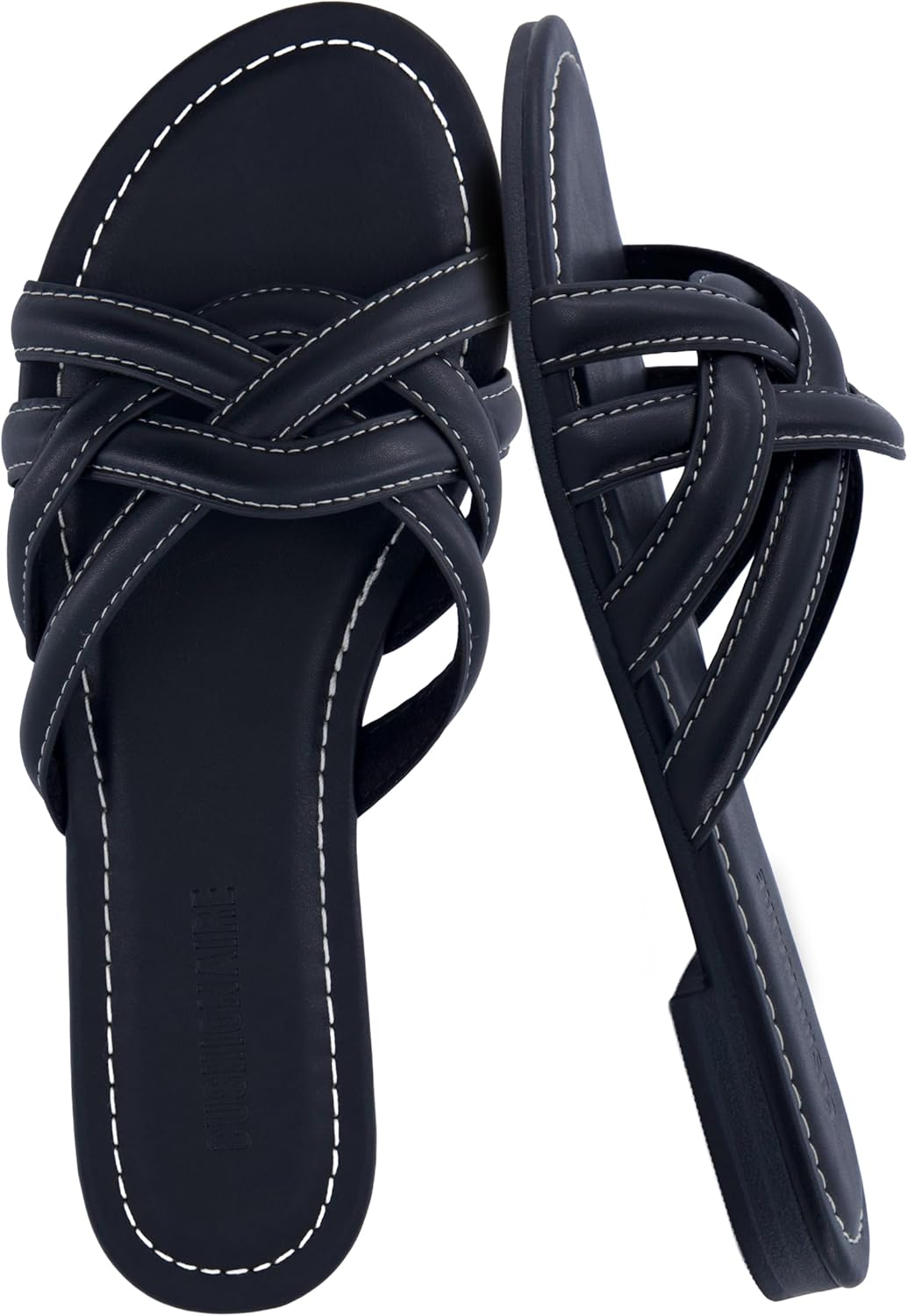 Step into style and comfort with the CUSHIONAIRE Laguna, a versatile choice in black sandals women love for everyday wear. Designed with a modern silhouette and timeless appeal, these sandals offer effortless pairing with casual or dressy outfits. The slip-on construction makes them easy to wear while still providing a polished look. Perfect for warm days and relaxed outings, these womens slides combine convenience with a flattering fit. The cushioned footbed supports you from morning to night, while the lightweight sole keeps each step comfortable. Whether youโre running errands or meeting friends for lunch, these slides add easy sophistication to your women footwear collection. Crafted for lasting wear, our women sandals feature a soft vegan leather upper that feels as good as it looks. The rich black tone gives them a sleek, adaptable style, making them an ideal match for jeans, skirts, or dresses. These black sandals are a staple that transitions seamlessly from day to evening, offering both practicality and polish. Finish your look with confidence in these flat sandals for women, the perfect blend of comfort, durability, and timeless appeal. From casual afternoons to evening plans, the CUSHIONAIRE Laguna offers a versatile style youโll reach for season after season, making it a lasting staple in your wardrobe.