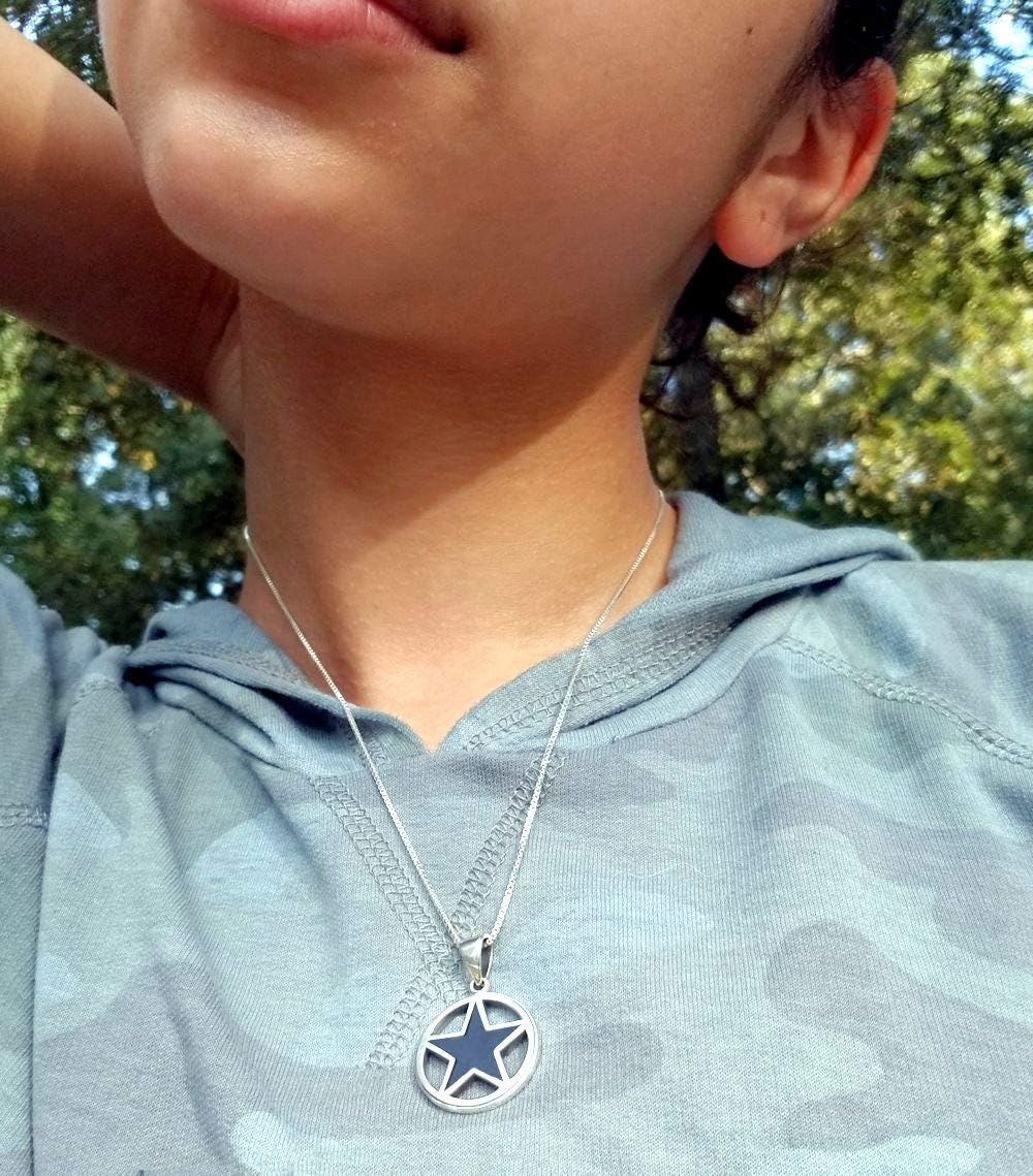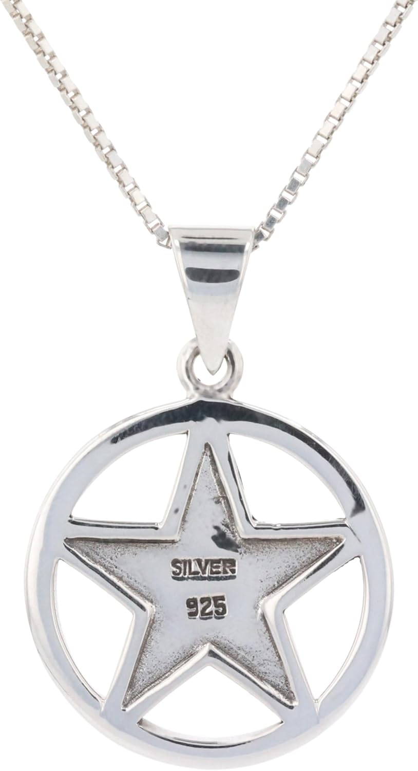 Crafted of highly polished .925 Sterling Silver, this necklace showcases a simple pentacle star design. Rich Black Onyx, often worn to ward off negative energies, adorns the star held in a Sterling Silver circle for protection. The pendant comes with an 18 inch sterling silver box chain that secures with a spring ring clasp. Peter Stone Jewelry Designs are exclusive and protected by Copyright Laws.