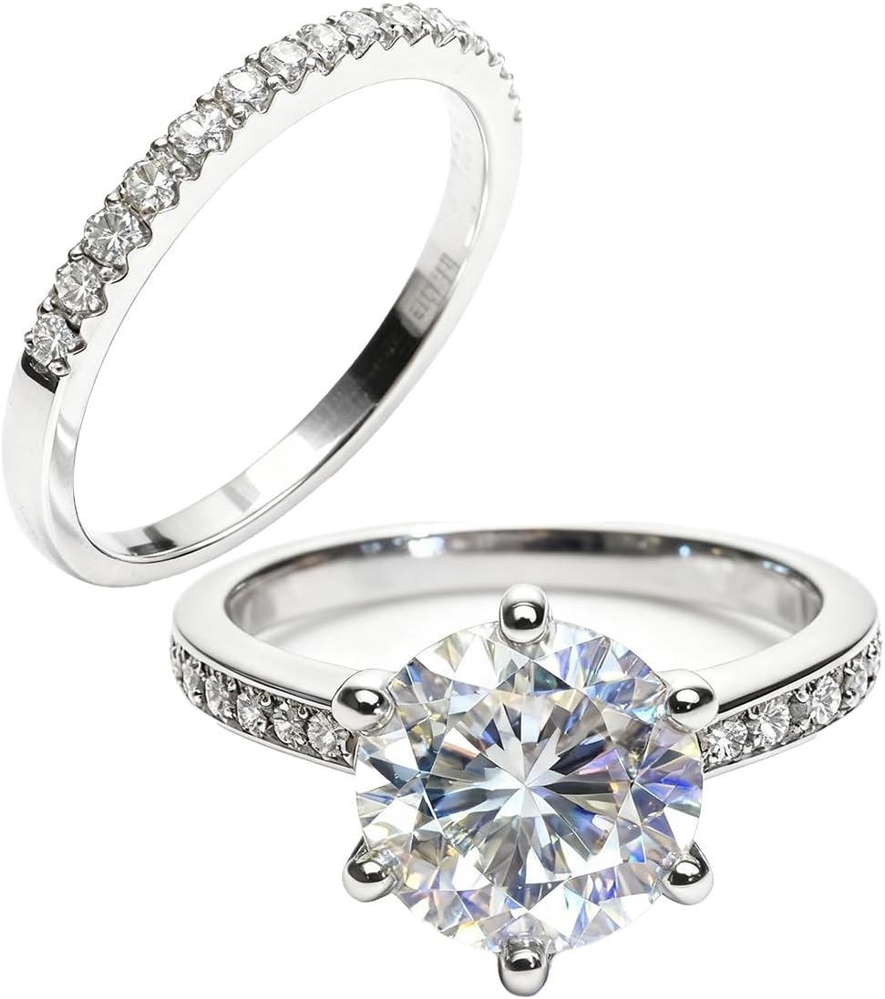 Known for its dazzling fire and exceptional brilliance, moissanite shines even brighter than traditional diamonds. With its higher refractive index, superior sparkle, and crystal-clear clarity, it has become the perfect choice for those who love luxury without the premium price. The classic six-prong setting provides secure gem protection, keeping the stone firmly in place for everyday wear. The centerpiece is an impeccably cut 2ct or 3ct Round Brilliant Moissanite, complete with a unique GRA certificate. Its perfect cut reveals stunning rainbow-spectrum fire. The 925 sterling silver band ensures hypoallergenic comfort. The sleek, minimal design offers a timeless and elegant look that never goes out of style, complementing any outfit while remaining lightweight and comfortable on the finger. Whether for daily wear, special moments, or as a meaningful gift for women, mom, or wife, this moissanite ring brings radiance to every occasion. Perfect for work, dates, and social gatherings, it makes you the center of attention wherever you go. Ideal for proposals, engagements, weddings, anniversaries, and other special occasions. The thoughtful packaging enhances the gifting experience, making the ring a cherished and memorable present. This moissanite ring is not just a piece of jewelry but a perfect expression of your taste and wisdom. Experience diamond-level brilliance at an affordable price!