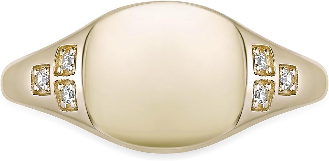 Elevate your jewelry collection with the timeless elegance of the Lavari Jewelers Lab Grown Diamond Signet Ring. This stunning ring features an elegant oval face adorned with lab-grown diamonds of F-G color and VS1-VS2 clarity, totaling 0.04 carats. Crafted from 18k yellow gold plated 925 sterling silver, this ring combines durability with luxurious style, making it a standout piece for any occasion.The sophisticated design of this signet ring makes it perfect for a variety of occasions. Whether you are attending a formal event, celebrating an anniversary, or simply looking to add a touch of elegance to your everyday outfit, this ring is the perfect accessory. Its hypoallergenic properties ensure it is safe and comfortable for sensitive skin, allowing you to wear it with confidence all day long.The ring's oval face and side gem detailing provide a contemporary twist on a classic design, making it a versatile addition to your jewelry collection. This elegant piece is not only a stylish statement ring but also a thoughtful gift for birthdays, anniversaries, holidays, or any special occasion. Celebrate life's precious moments with a gift that embodies both beauty and sophistication.Complete your look with our matching jewelry pieces. Lavari Jewelers offers a stunning selection of coordinating earrings, pendant necklaces, bracelets, and piercing jewelry, all designed to complement this signet ring perfectly. Mix and match our jewelry to create a personalized and sophisticated look that reflects your unique style.Trust Lavari Jewelers to provide high-quality, stylish jewelry that reflects your unique personality and taste. Available in sizes 4 to 8, this ring is a must-have addition to any jewelry collection. Celebrate your special moments with Lavari Jewelers, where each piece is designed to bring joy and elegance to your life.