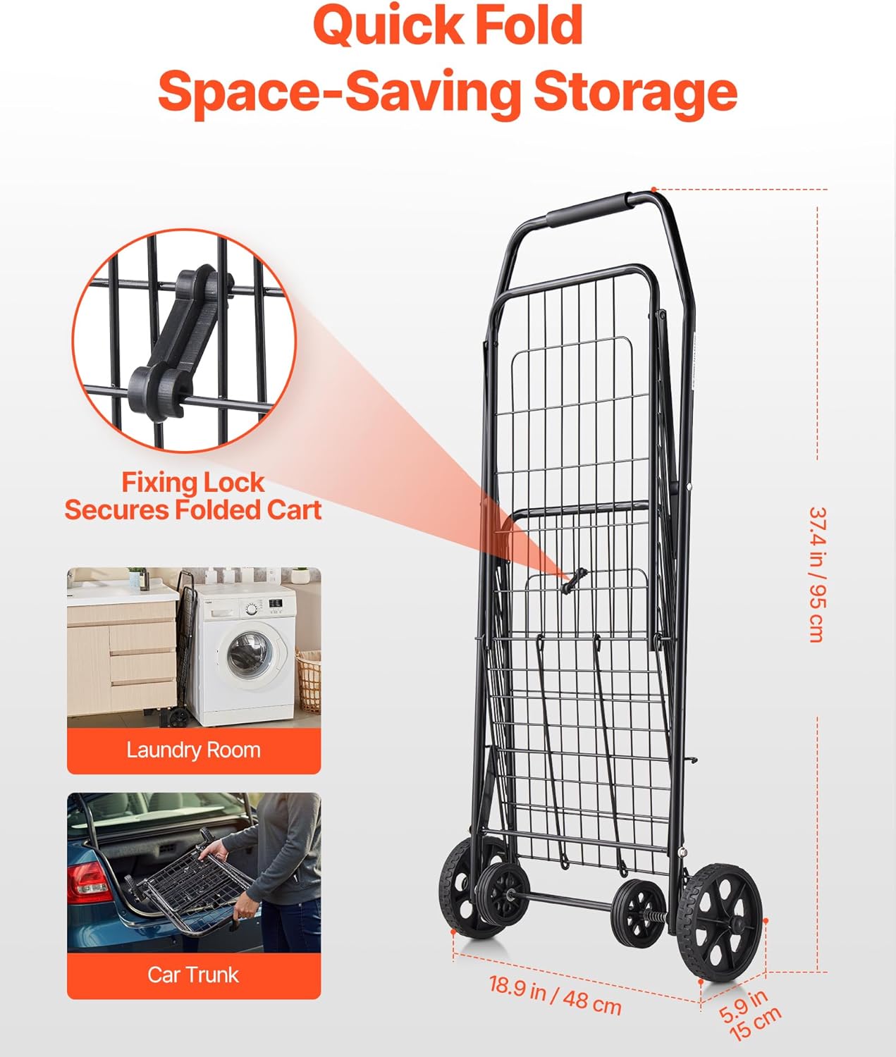 | Item Type Name | Folding Grocery Utility Cart with Swivel Wheels, 90 LBS Large Load Capacity, Heavy Duty Rolling Laundry Basket Butler for Laundry, Shopping, Camping, Grocery, Luggage, Black |