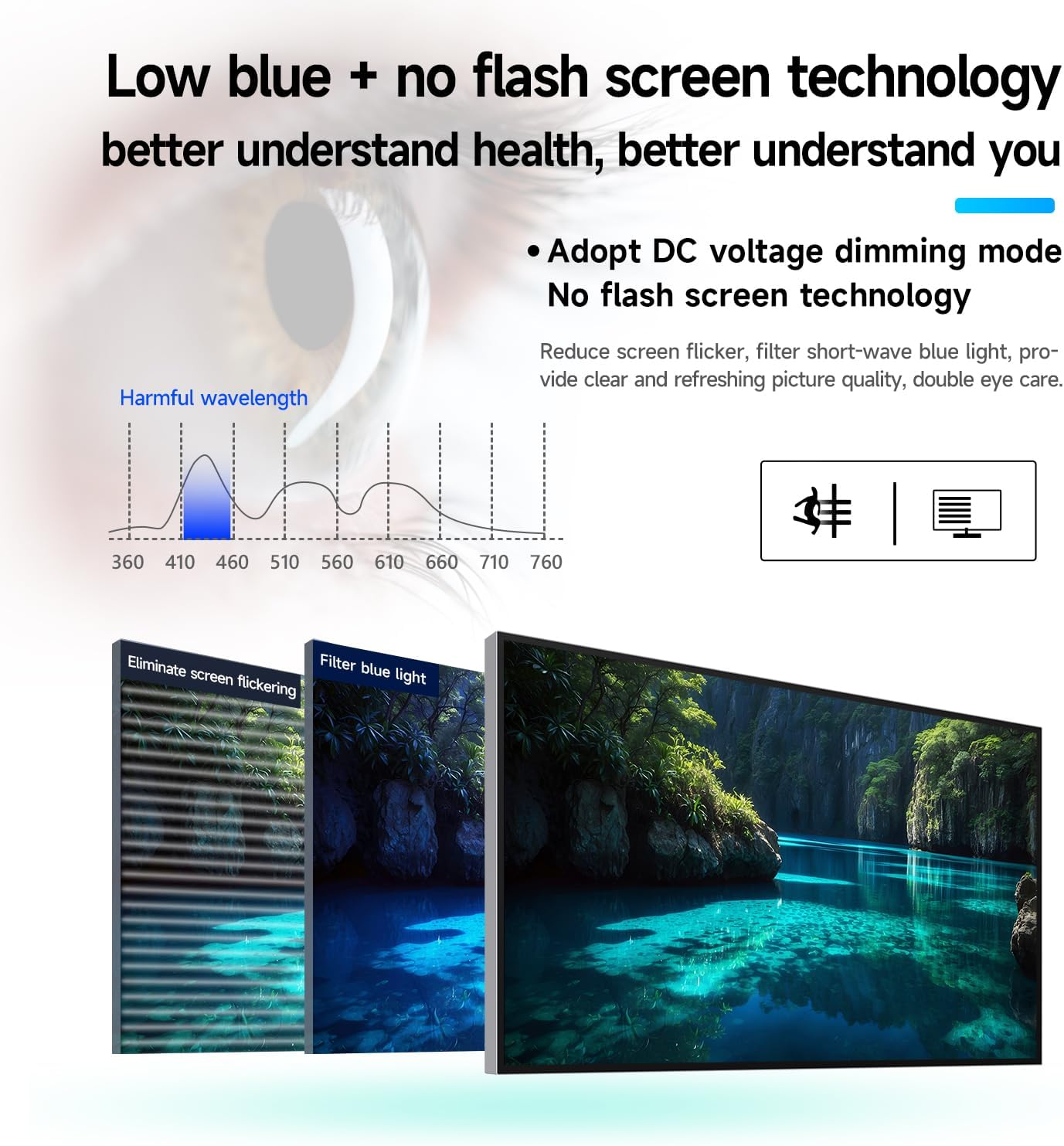 | Additional Features | Aluminum alloy body, Built-In Speakers, Eye Care, Frameless, Tilt Adjustment |