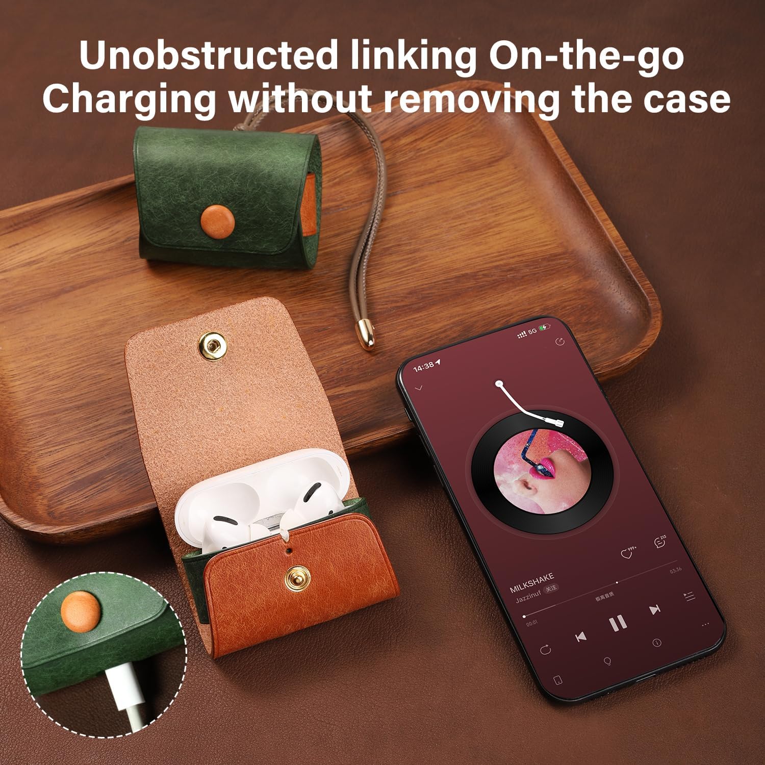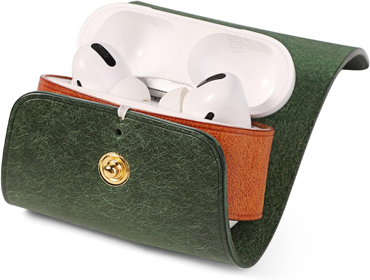 This handmade leather protective case is suitable for AirPods Pro 3 and features exquisite craftsmanship to protect your wireless earphones in a stylish way. This case is made of 100% full grain cowhide and has a unique frosted surface that forms a beautiful luster over time, giving it an increasingly unique retro appearance during use. Plant tanned cowhide was originally a smooth classic leather, polished to form a slightly velvety surface with a soft touch and subtle hardness. The size of each box is 2.67 inches by 1.96 inches by 1.57 inches. The secure buckle can protect your headphones while maintaining ease of use. This watch case comes in two color combinations, which can be paired with rich tones to complement each other. The leather is fully dyed, and the soft meat surface has an excellent hand feel.