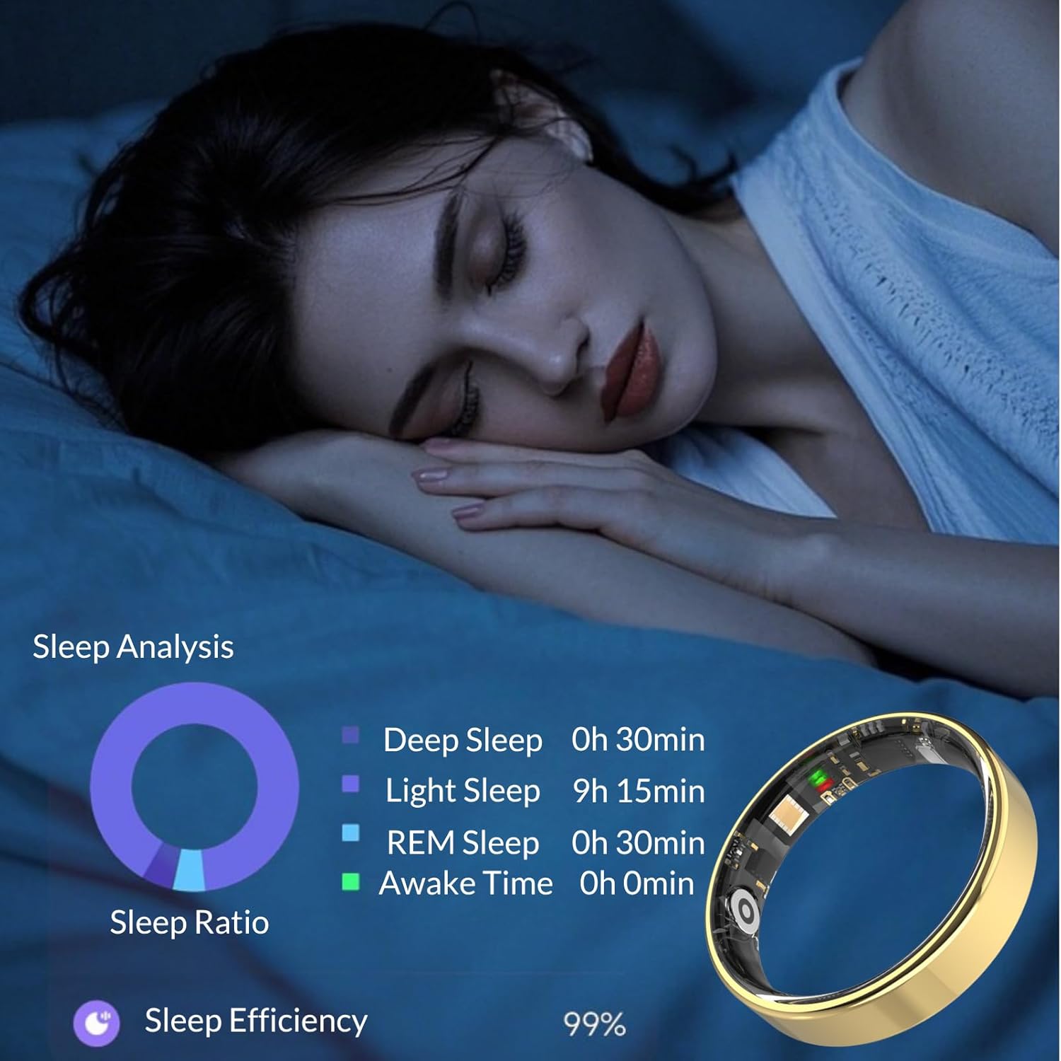 Oulencu Ultra-Thin Smart Ring for Women&Men Fitness/Sleep/Stress/HR Tracker No Subscription iOS & Android Compatible 7 Day Battery Life Smart Health Ring for Women Men Fitness Tracker with Heart Rate, Blood Oxygen, Blood Pressure, Sleep Monitoring, Step Counting