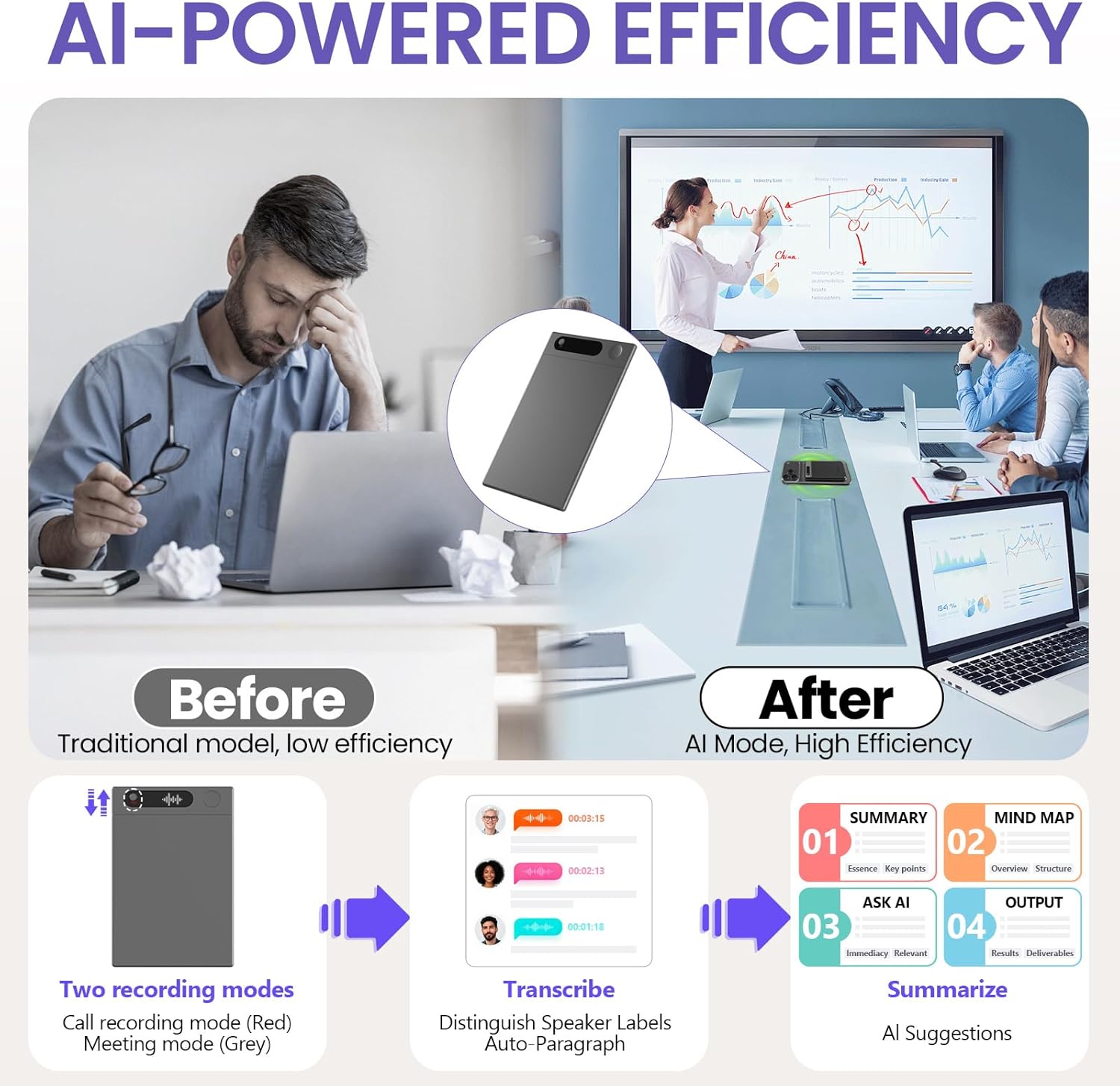 | BuiltIn Media | 1 x AI Smart Voice Recorder, 1 x Charging Cable, 1 x Magnetic Protective Case, 1 x Quick Start Guide |