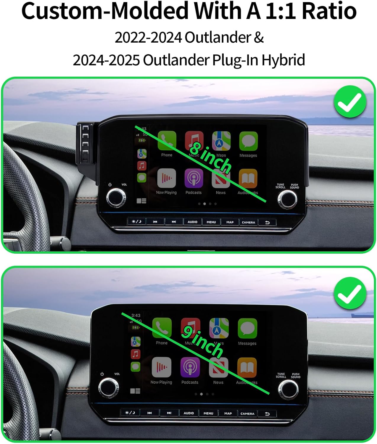 | Compatible Devices | Mitsubishi Outlander,Outlander Plug-In Hybrid,(8/9 inch screen only) |