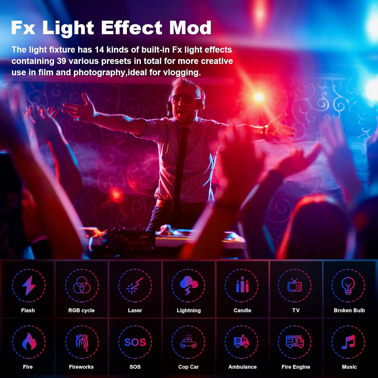 | Flash Modes Description | Constant illumination with adjustable brightness, color temperature (2500K-8500K), and color (RGB 360 full colors) |