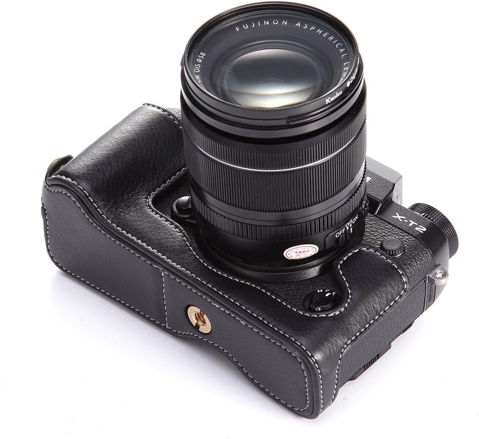 1.This camera is made by real top layer oil leather, the design is simple and vintage, use Metal sizing techniques make it very fit with the camera body. 2.Inside lining use high lever velvet to protect camera body for scratch and coloration. 3.There is a opening on the bottom for battery, You don't need to take off the half case when you change battery. 4.Under base screw is made by copper and it can easy take off by coin. You don't need to take off the half case when you use tripod. 5.It has a special design for Fujifilm X-T2 Fuji XT2 X-T3 XT3 which makes it easy to turn over the Screen and it will totally not affect screen rotation. 6.You don't need to take off the half case when you connect data lines. Content: 1 x camera half case, 1 x Free Genuine Real Leather Hand Strap, camera not included. Material:Genuine leather.