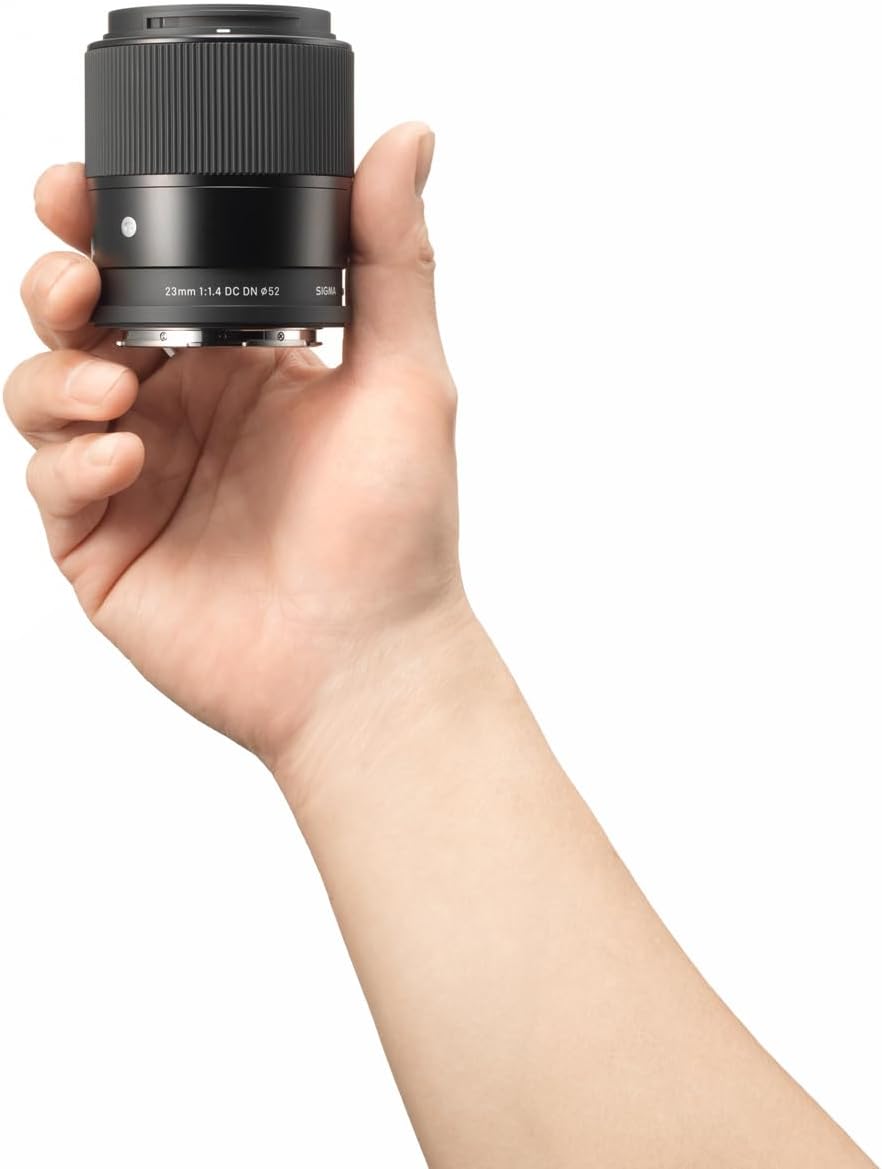 An exceptional addition to the SIGMA's DC DN line, the 23mm F1.4 DC DN | Contemporary Lens for Sony E Bundle is a high-performance, wide-angle prime lens specifically engineered for APS-C mirrorless cameras. This lens bundle, which includes a 52mm Multi Coated UV Filter and a Microfiber Cleaning Cloth, delivers unparalleled resolution and stunning bokeh effects, courtesy of its F1.4 maximum aperture.The 23mm F1.4 DC DN | Contemporary Lens is the fourth F1.4 DC DN prime lens in the series, joining the ranks of the 16mm, 30mm, and 56mm F1.4 DC DN | C lenses. This lens offers a field of view equivalent to 35mm on a full-frame camera, making it a versatile choice for various photography genres including landscapes, journalism, and everyday photography.Weighing just 330g and measuring 78.9mm in length, this compact lens is designed to maximize the mobility of APS-C mirrorless cameras. It is compatible with compact APS-C mirrorless camera bodies such as the Sony a6000 series and Fujifilm X-S10, as well as high-megapixel, full-frame cameras in APS-C crop mode like the 61MP SIGMA fp L.The lens features a quiet, high-speed stepping motor for swift, silent operation, making it suitable for both still and video capture. Its excellent flare and ghosting resistance make it ideal for real-world shooting conditions. The lens also boasts a 9-blade rounded diaphragm for creative bokeh effects and a dust- and splash-resistant mount for durability.The SIGMA 23mm