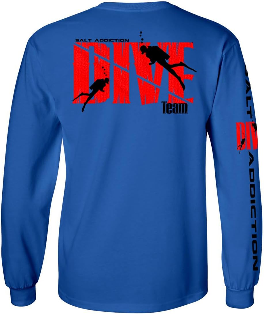 Show your passion for diving with this Salt Addiction long sleeve T-shirt featuring a bold dive flag design. Perfect for both casual wear and post-dive gatherings, this versatile shirt combines style with comfort. Made from a blend of cotton and 50/50 material, it offers breathable comfort for year-round wear. The classic long sleeve design provides extra protection when you need it, while the diving flag graphic makes a statement about your underwater adventures. Whether paired with jeans for a casual look or worn as a layer for those cooler evening boat rides, this shirt is a must-have addition to any diver's wardrobe. The durable construction ensures the shirt maintains its shape and design through regular wear and washing, while the comfortable fit allows for easy movement.