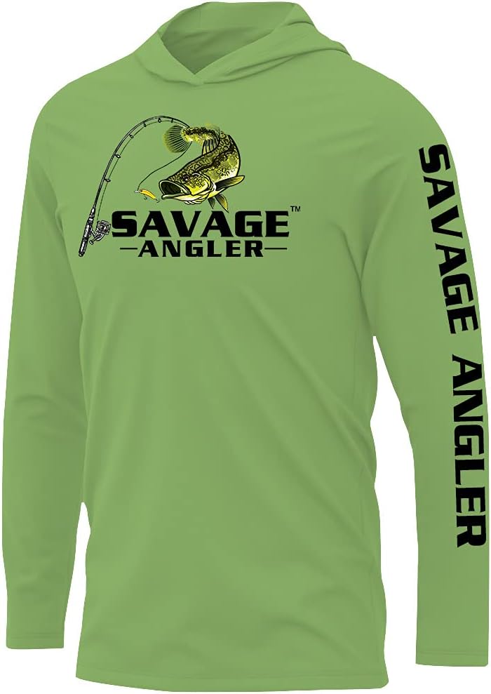 Details: - High-end heat transfer prints - All prints will maintain their color vibrancy for as long as you own the shirt - Premium Quality Performance Hoodie - Radial sleeves for maximum range of motion when casting - Front cross neck hoodie to protect your neck from harmful rays - 100% Polyester - Breathable, moisture-managing interlock fabric - UV Protection / UPF 50+ - Round neck with double needle hem Features: Moisture Management: Transports moisture away from the skin to the garment's outer surface. UV Protection: Tight construction and color of fabric blocks UV radiation from passing through and reaching the skin. Tagless: Tagless size label prevents neck discomfort.