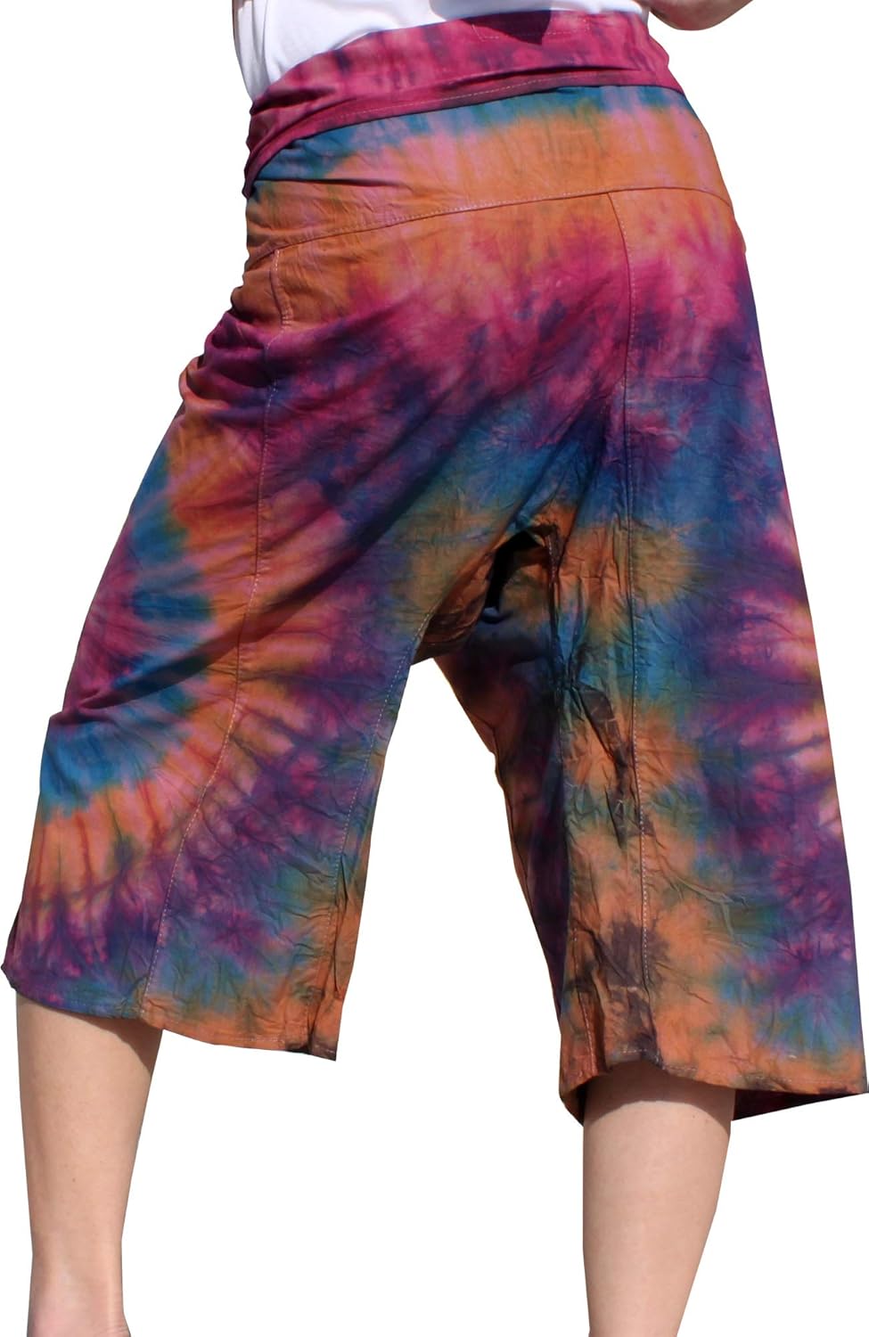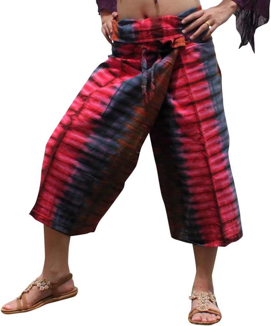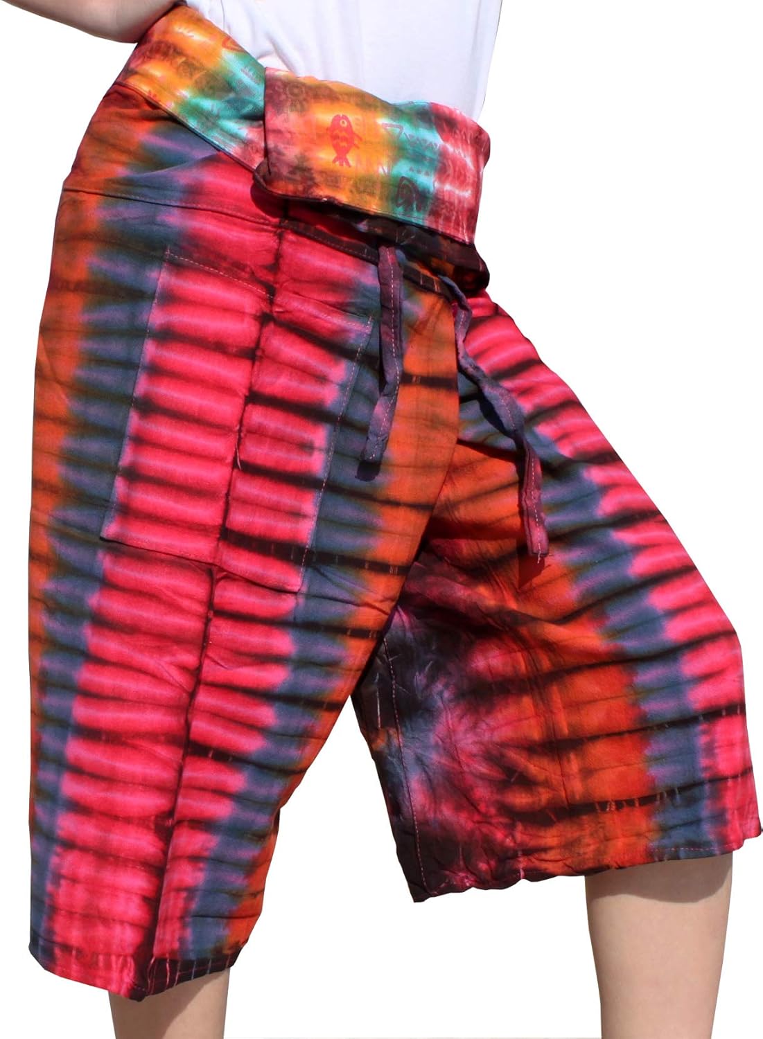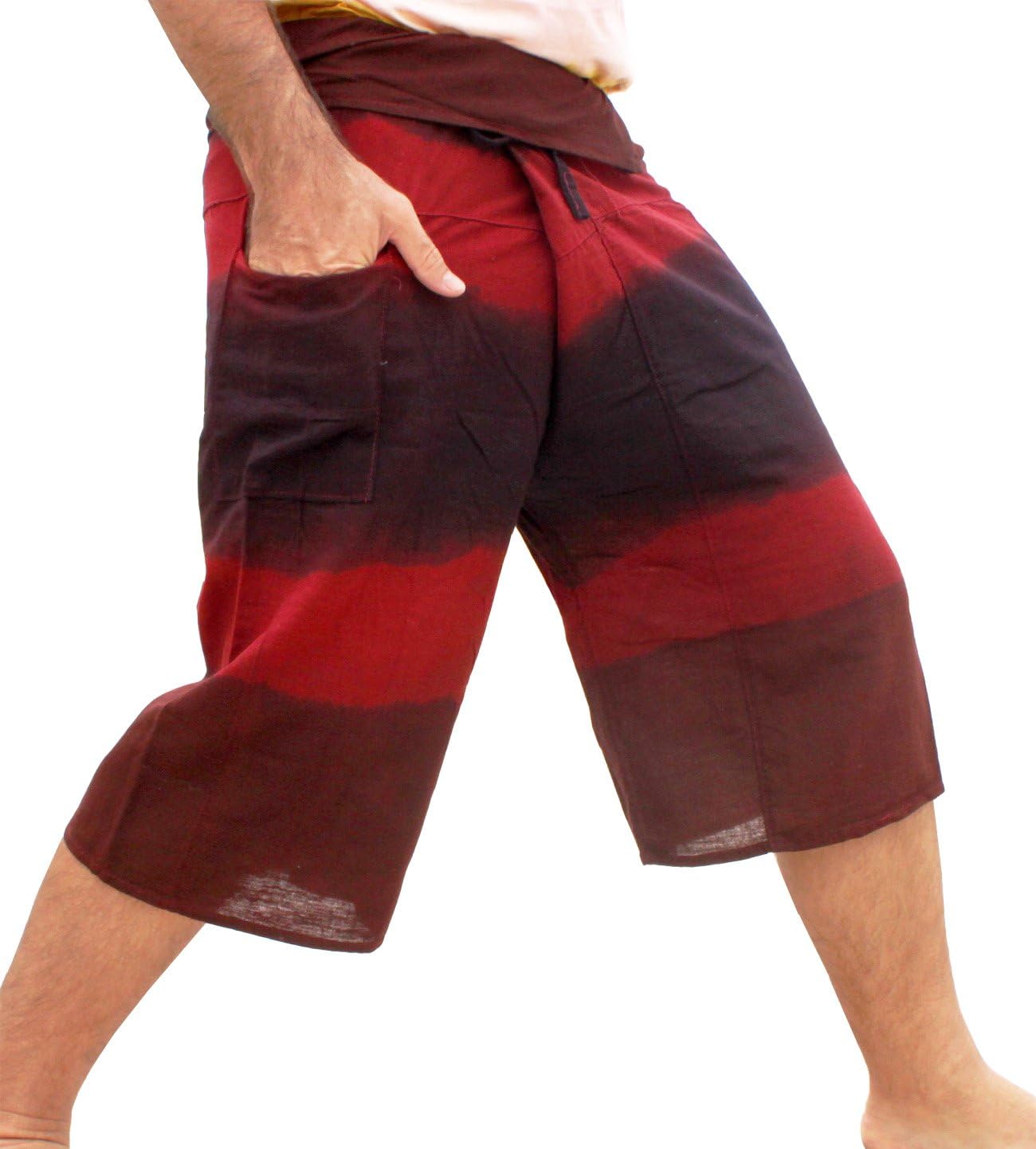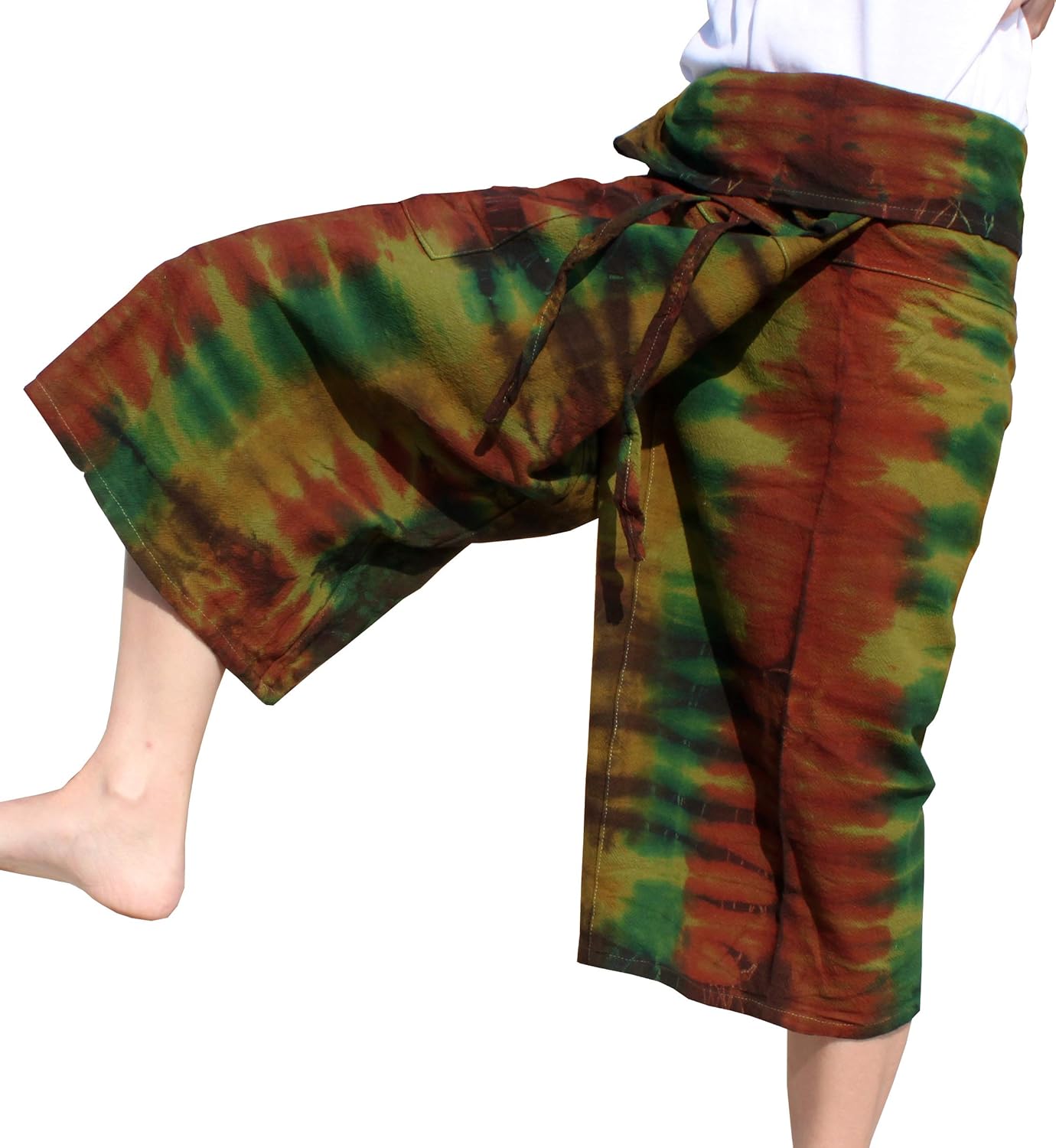 Hand made craftwork, made in Thailand under Fair Trade principles.Measurements:- Fisherman pants are wrap pants that fold across your front when worn, one pair can fit many sizes, we give both the full waist measurement and a range of wearer waist measurements we feel the pair is suitable for.- There are a couple of inches above the waist ties which fold down after tied to create the unique belt appearance, this means the length of the pants from waist to bottom hem (outseam) after worn will be shorter than the full length measurement.- Inseam on fishermans pants is not an important measurement as these pants are made with a very low crotch for extreme comfort.X-Small-SmallFull waist: 48inches (122cms)Suitable for waists: 25-31inches (64-79cms)Length: 29inches (74cms)Medium-LargeFull waist: 54inches (137cms)Suitable for waists: 27-35inches (69-89cms)Length: 30inches (76cms)Large-X-LargeFull waist: 62inches (157cms)Suitable for waists: 32-42inches (81-107cms)Length: 31inches (79cms)XX-Large-3X-LargeFull waist: 72inches (183cms)Suitable for waists: 38-48inches (97-122cms)Length: 32inches (81cms)