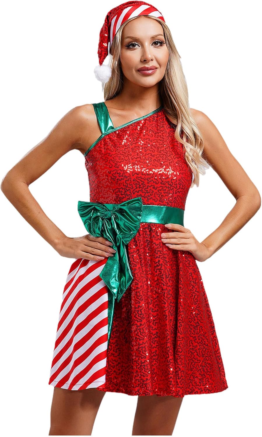 Set Include: 1Pc Women Dress, 1Pc Santa Hat Condition: Brand New Material: 85% Polyester, 15% Spandex Tag No.---|---Recommended Size---|------Length------|------Chest------|------Waist-----|----Hat Length- ---S------|-----------S----------|---33.5"/85.5cm---|----32.5"/83cm---|---28"/71.5cm---|---15.5"/39.5cm ---M------|-----------M----------|-----34"/87cm-----|----34.5"/88cm---|---30"/76.5cm---|---15.5"/39.5cm ---L------|-----------L----------|---34.5"/88.5cm---|----36.5"/93cm---|---32"/81.5cm---|---15.5"/39.5cm ---XL-----|----------XL----------|-----35"/90cm-----|----38.5"/98cm---|---34"/86.5cm---|---15.5"/39.5cm --XXL-----|----------XXL---------|----36"/91.5cm----|---40.5"/103cm---|---36"/91.5cm---|---15.5"/39.5cm --3XL-----|----------3XL---------|----36.5"/93cm----|---42.5"/108cm---|---38"/96.5cm---|---15.5"/39.5cm