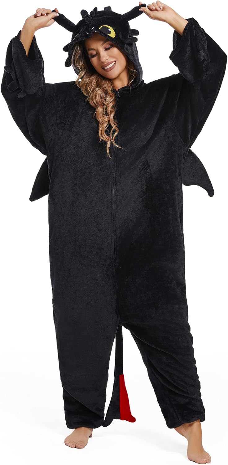 This onesie pajama is made of high-quality flannel and incorporates various elements of dragons. Can keep you warm on Halloween while being like a real dragon! It allows you to fully enjoy party activities. Our jumpsuit is easy to put on and take off, with a zipper closure. Whether indoors or outdoors, this is a very good choice. Size chart: Size:S--Suggested Height:145cm-155cm/57"-61" Size:M--Suggested Height:155cm-165cm/61"-65" Size:L--Suggested Height:165cm-175cm/65"-69" Size:XL--Suggested Height:175cm-185cm/69"-73" Package includes: 1 piece of onesie dragon pajamas