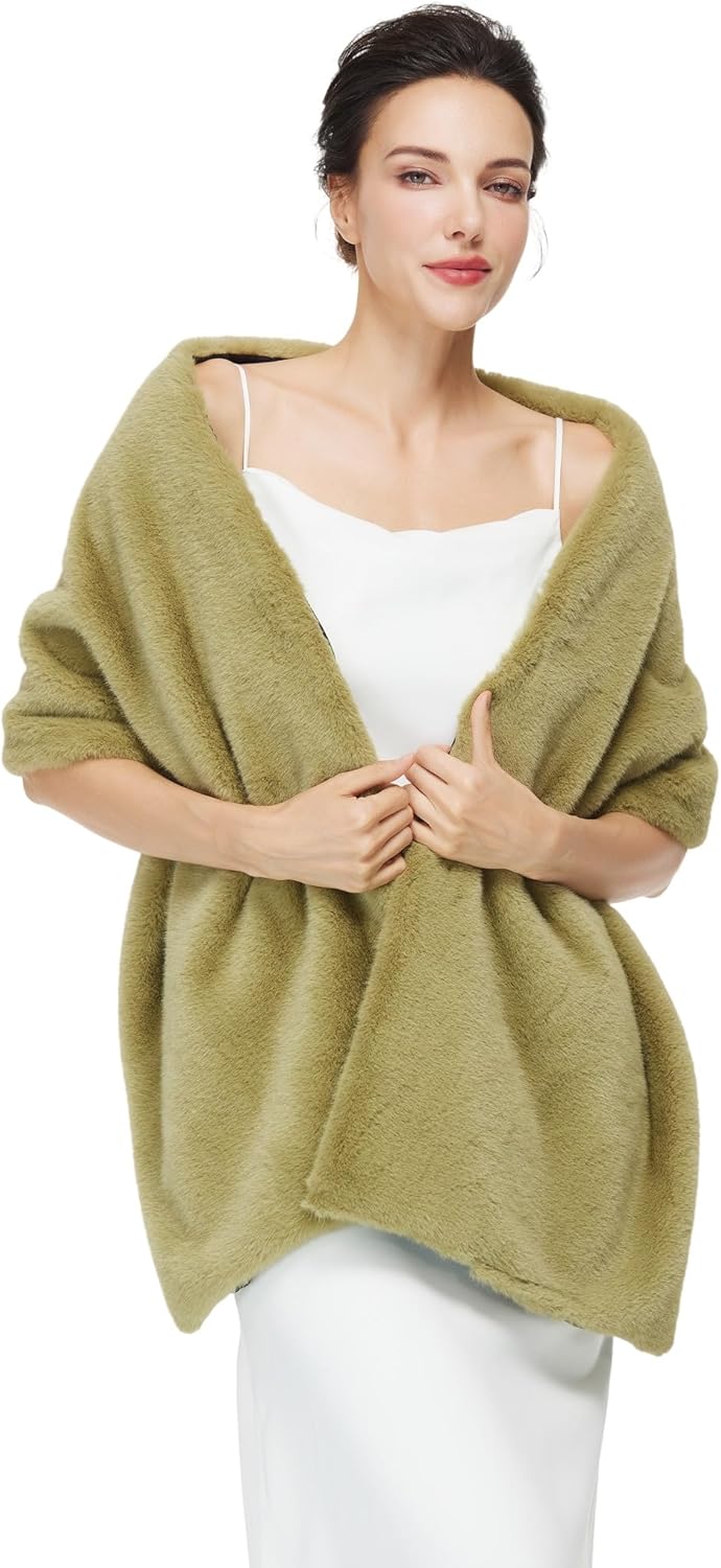 Women fur shawl is made from newly upgraded faux mink fur, which is fluffy and shiny and barely sheds. It's soft to the touch and super warm to wear, keeping you warm for any special occasion in autumn or winter. Women's faux fur coats are perfect for weddings, 20s parties, carnivals, masquerade balls, Christmas parties, and Halloween parties. It's the perfect holiday gift for yourself, your friends, your mom.