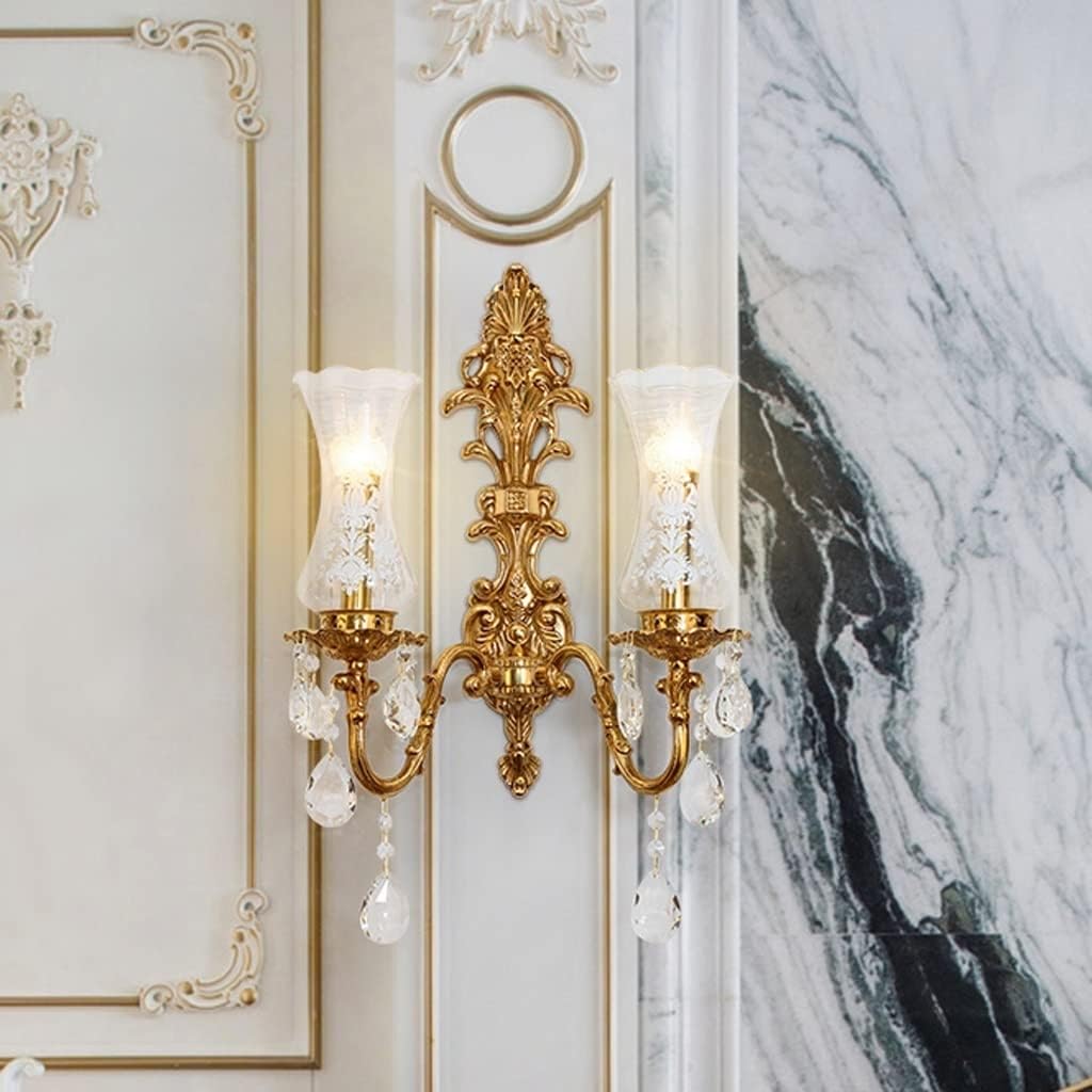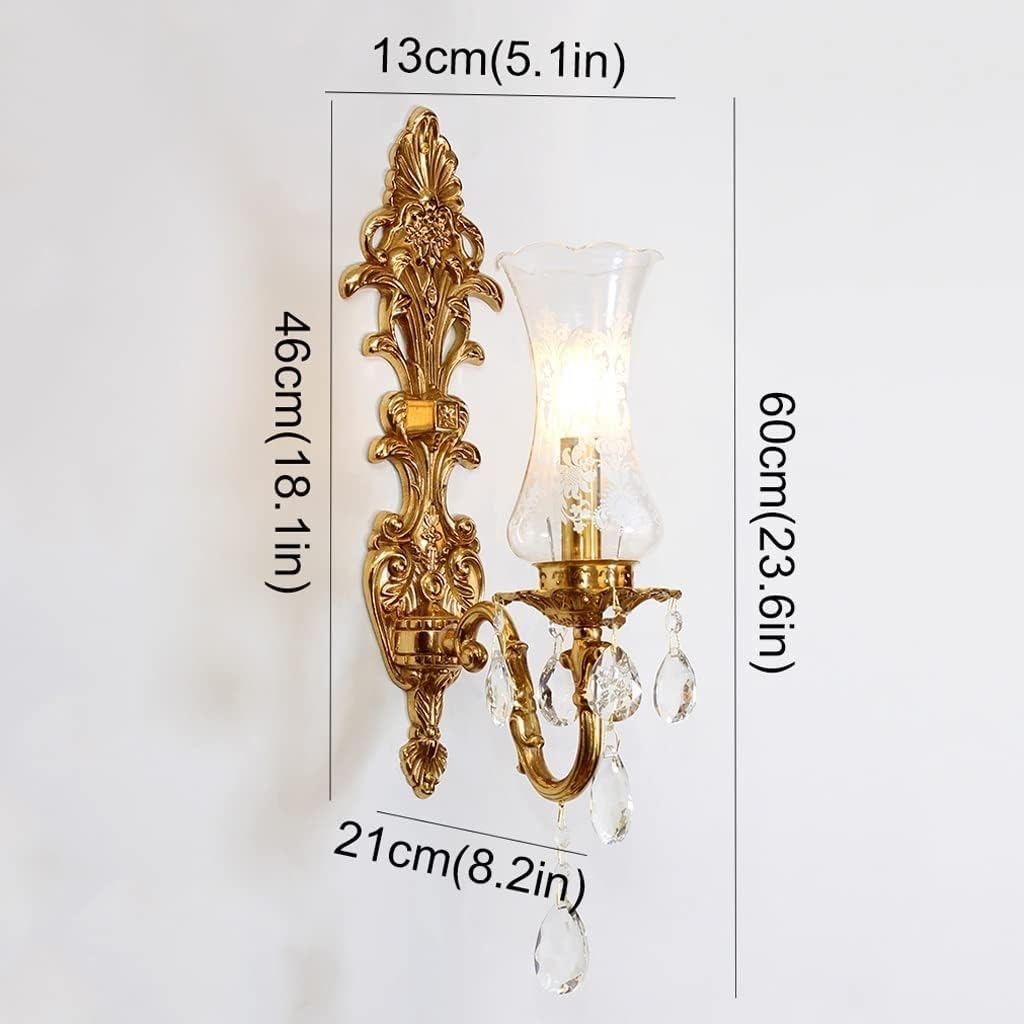 Elevate your home décor with this Nordic-style brass wall lamp, combining elegant design and practical lighting. Featuring a patterned glass shade, crystal pendant, and solid brass frame, it adds a touch of luxury to any room.This decorative wall light is ideal for bedrooms, living rooms, hallways, and more. It provides soft, even lighting that’s gentle on the eyes—perfect for reading, relaxing, or creating a cozy atmosphere.Available in single-head or double-head styles, this wall sconce offers flexible lighting options to suit your space and décor. It uses an E14 socket, compatible with LED, incandescent, or energy-saving bulbs (6W–10W).Made from high-quality brass with anti-oxidation treatment, it resists fading and wear. Easy to clean and built to last.Specifications:Material: Brass + Crystal + GlassSocket: E14Power: 6W–10WVoltage: 110V–240VIlluminated Area: 5–10㎡Styles: Single-head (13x60cm) / Double-head (35x60cm)Applicable for: Bedroom, living room, corridor, bathroom, kitchen, office, etc.If you have any questions or issues, please feel free to contact us—we respond within 24 hours.Thank you for choosing this beautiful brass wall lamp. It’s more than just a light—it's a stylish accent for your wall.