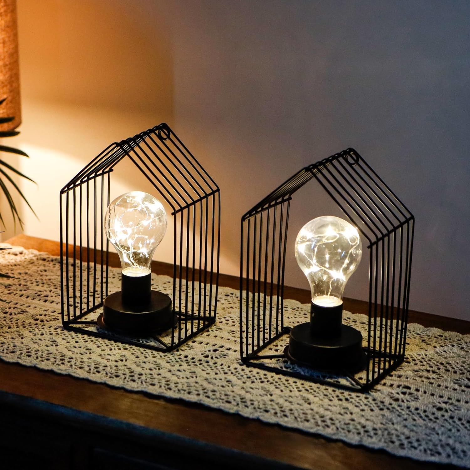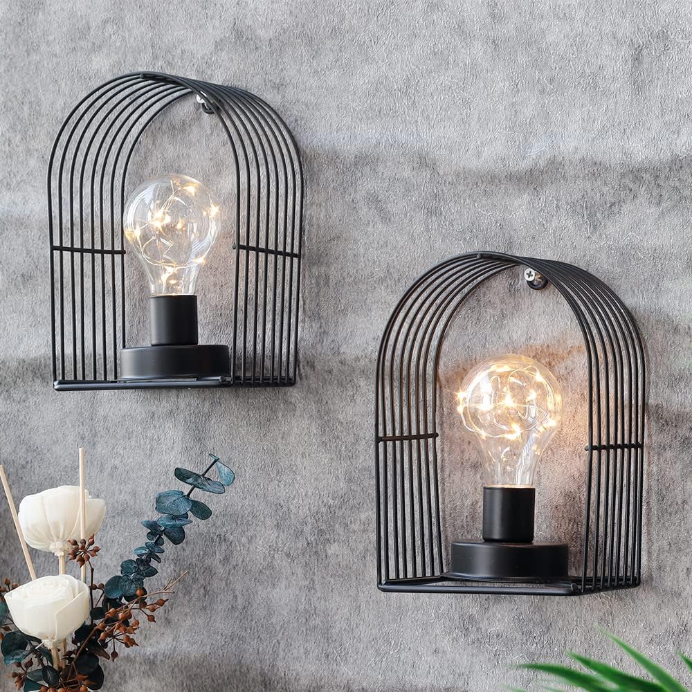 JHY DESIGN 7''H Unique Cordless Wall Sconce Set of 12 Metal Wall Mount Lamp with 6-Hour Timer and Warm White Fairy Lights Bulb Wall Decor for Bedroom Living Room Hallway
