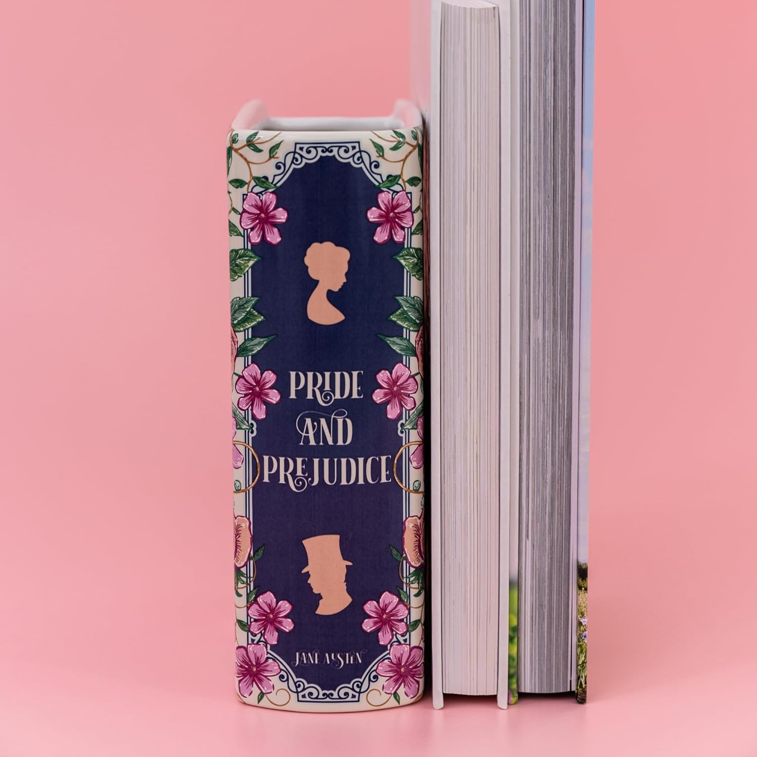 Take your love for the classics one step further with this bundle including 1 small, ceramic, book shaped The Great Gatsby vase and 1 large, ceramic, book shaped Pride and Prejudice vase. Featuring artwork influenced by beloved titles and a multifunctional design, these unique white vases are sure to dress up any room. Fill these ceramic vases with fresh flowers or your favorite writing utensils to adorn your space with the most practical bookish charm.