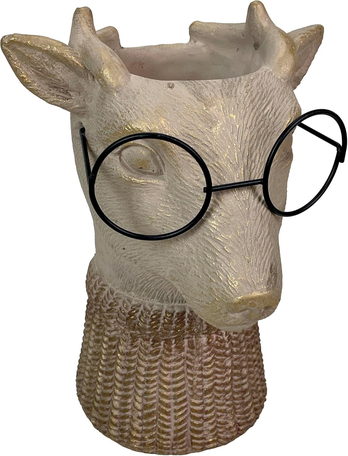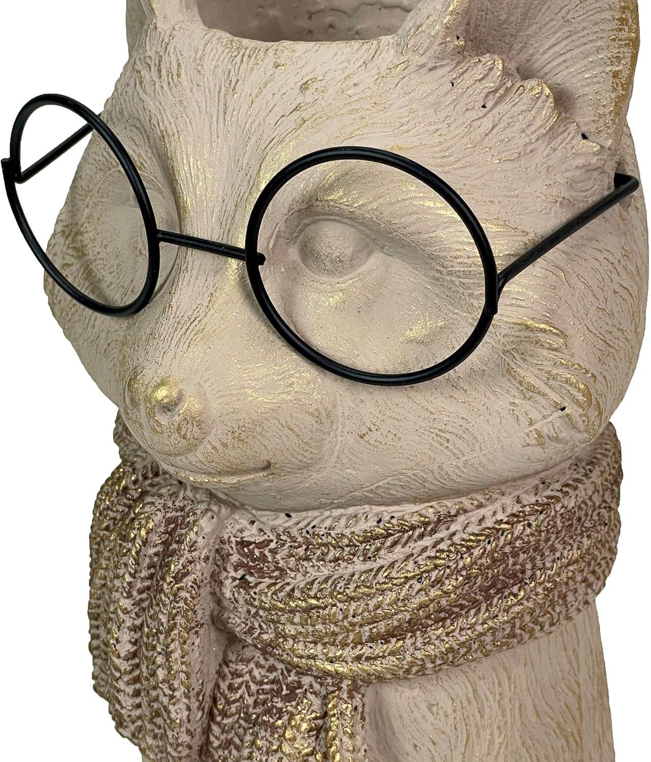 Add a touch of playful sophistication to your home with the Bespectacled Fox Cement Vase, a whimsical 8.25-inch accent piece that blends artisan charm with functional design. Inspired by woodland style, this fox vase is crafted from solid cement and features a hand-applied distressed taupe finish, enhanced with subtle gold metallic accents that shimmer on the finely sculpted fur and detailed knit-textured scarf. The fox’s face comes to life with authentic, round black wire glasses for a truly dimensional look, creating a standout conversation piece for any decor. With a 2.75-inch diameter opening that tapers to 2.5 inches at the base and a 7-inch depth, this vase is perfect for fresh flowers, succulents, dried botanicals, or even as a quirky organizer for pens and brushes. The substantial cement construction ensures durability and chip resistance, while felt pad feet on the base protect your furniture from scratches and keep the vase stable on any surface. The highly detailed, gold-brushed scarf adds a warm, cozy touch, and the fox’s gentle smile brings personality to bookshelves, mantels, desks, entryway tables, or nightstands. Designed for indoor use, this whimsical fox vase fits seamlessly into eclectic, rustic, woodland, or modern home decor styles. It’s an unforgettable gift for animal lovers, fox collectors, teachers, gardeners, or anyone who appreciates unique, functional art. Whether used as a planter, vase, or creative caddy, the Bespectacled Fox Cement Vase delivers both style and practicality—making every day a little brighter and a lot more charming.