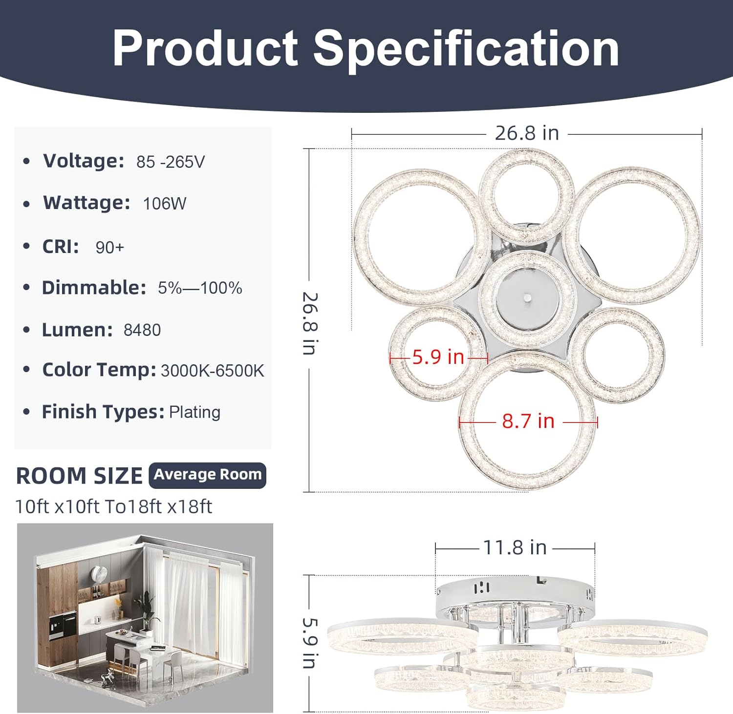 | Model Name | 7 rings modern ceiling light Chrome |