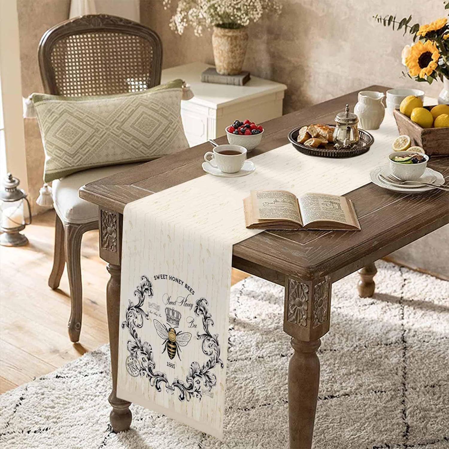 Material: Linen Burlap Fabric Table Runner Size: 13 Inches Wide By 70 Inches Long 13 Inches Wide By 90 Inches Long 14 Inches Wide By 72 Inches Long 16 Inches Wide By 72 Inches Long 18 Inches Wide By 72 Inches Long Please measure the matching table size before purchasing Exquisite Pattern Design Durable Table Runner design with farmhouse,stylish,classic,elegant,modern,vintage,natural pattern Decoration Perfect for holiday,Christmas,parties,birthday,parties,wedding,baby shower,,mother’s day,father’s day,Easter,Halloween,Valentine's day,Thanksgiving day,new year Idea Gift This dinning table runner stylish and durable,compact and delicate,it is the best gifts choice for women,men,girls,boys,friends