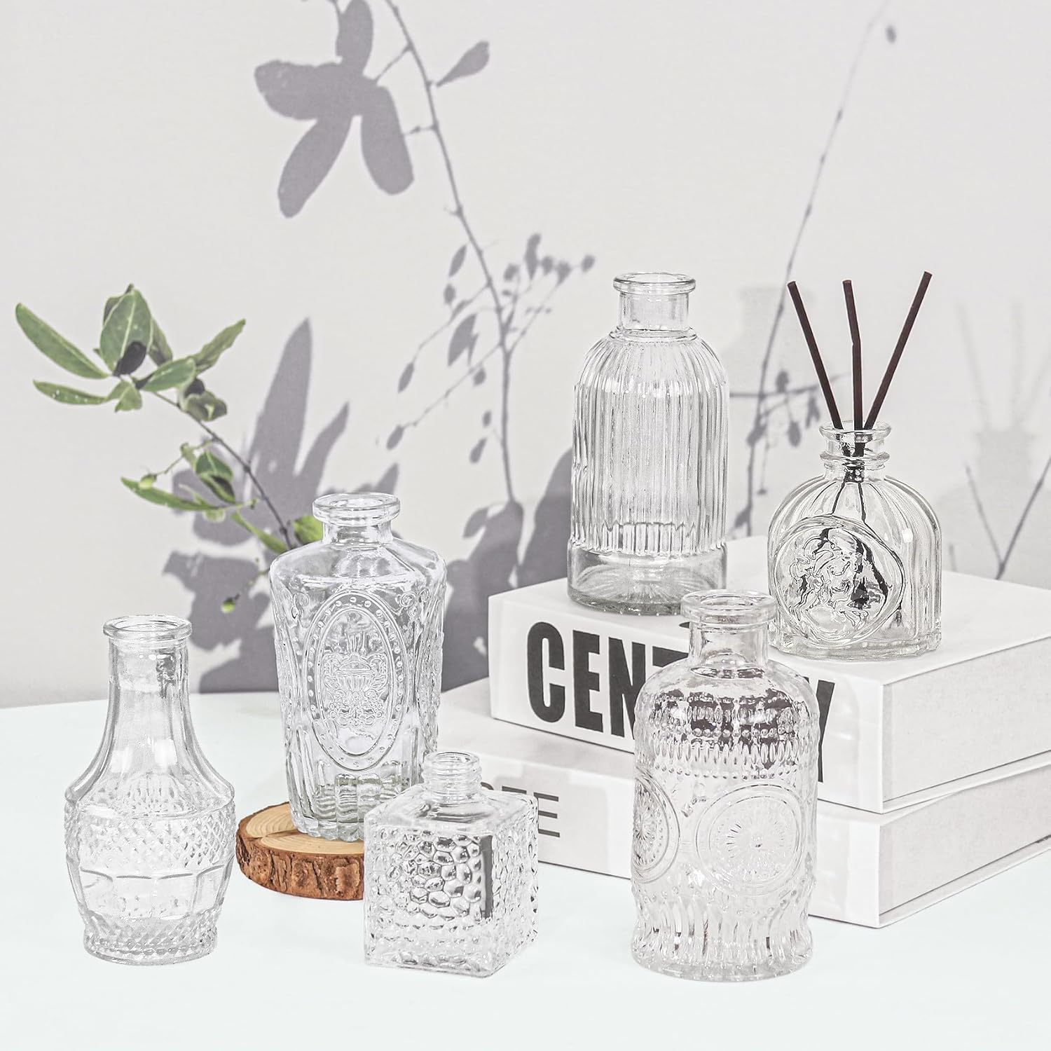 Cute Bud Vases Set For Home Decor or Event Decorations Product Information: Bud vases in bulk Size:As the picture show Material:Glass Quantity:6/24/40 pieces Suitable for Many Occassions This small glass vase set is perfect for home decor,weddings, garden parties and other occasion table decorations, make the table attractive in the special day. Delicate mini French vintage-styled relief glass vases set in a variety of different of shapes, patterns and sizes styles for flowers hydroponic plants, home decorations, tablecenterpieces,birthday,wedding,housewarming,mother's Day gifts, and photo props.