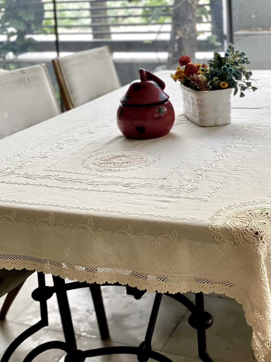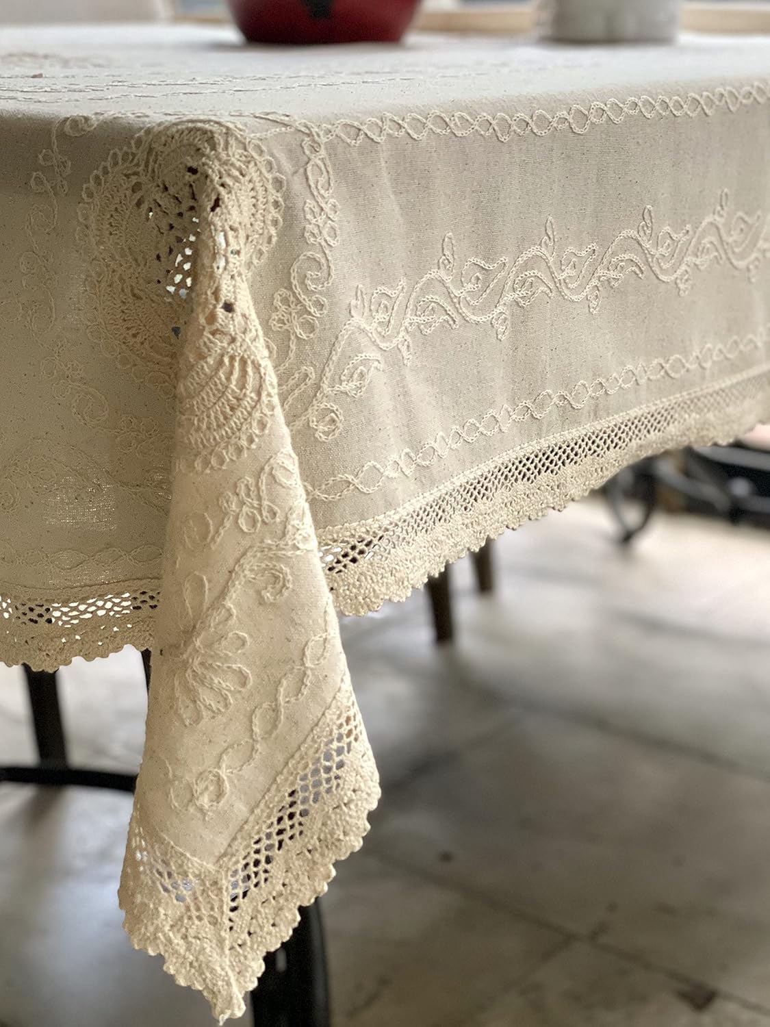 | Style Name | Vintage-Inspired: A timeless design that blends classic vintage elements with modern elegance. Rustic Charm: Features natural linen cotton and delicate embroidered floral details for a cozy, rustic look. Elegant & Sophisticated: With its lace edging and soft beige tone, it adds an elegant, refined touch to any space. Traditional & Timeless: The design brings a sense of tradition and warmth, perfect for creating a welcoming, vintage atmosphere. Versatile Decor: A stylish piece that can be used in a variety of settings, from dining tables to living rooms, enhancing your home’s overall aesthetic. |