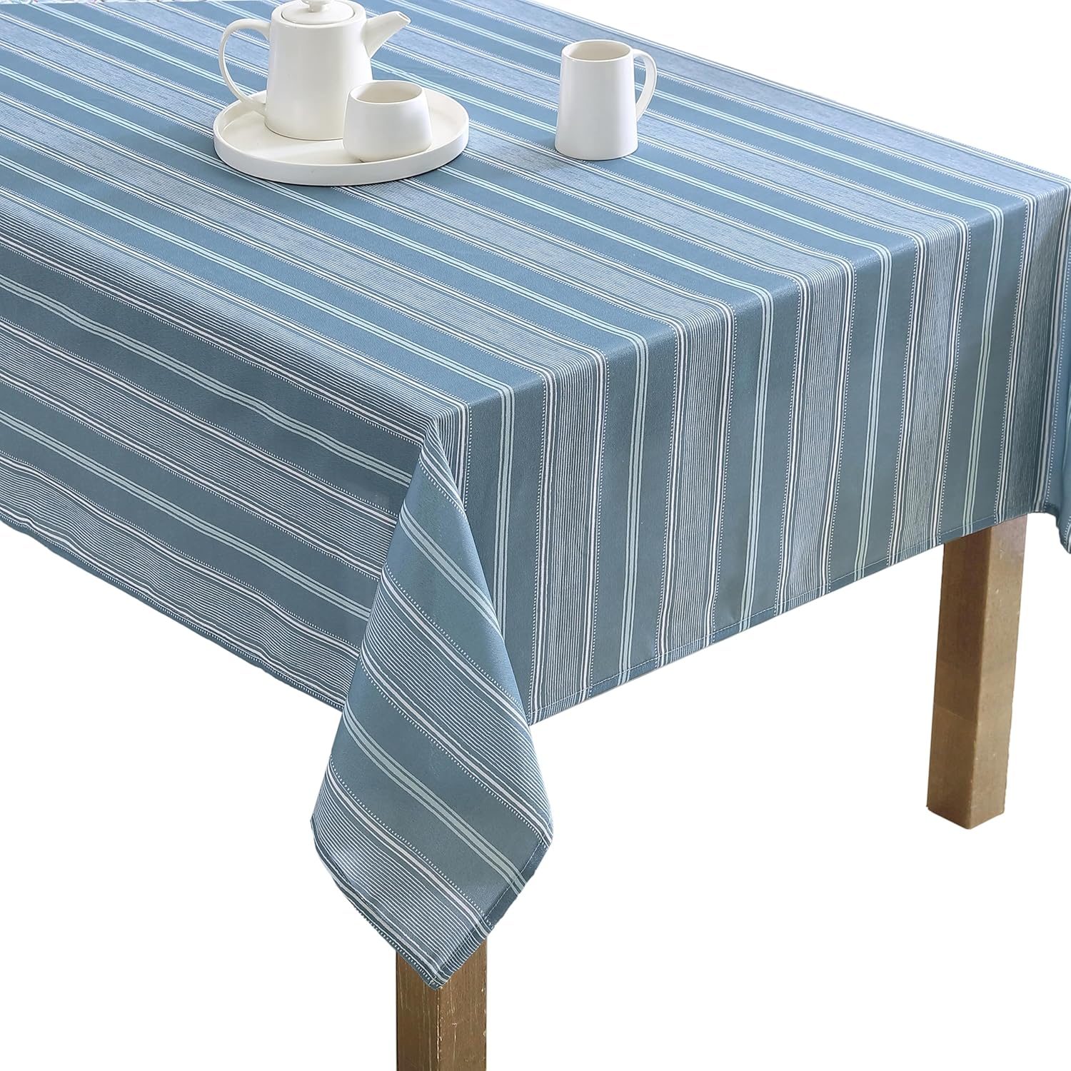 Adorn your table with these Laura Ashley branded tablecloths featuring beautiful floral prints, classical striped patterns, and textured solid colors. Perfect for dining room table, kitchen table, banquet table, for weddings, birthdays, holidays and parties. Suitable for casual or formal dining, for everyday or special occasion use. Use indoors or outside on the patio, or camping. Seats 10-12. 100% polyester lays smooth and flat on the table, is water repellent and is wrinkle and stain resistant. Tablecloth is machine washable for easy care and low maintenance.