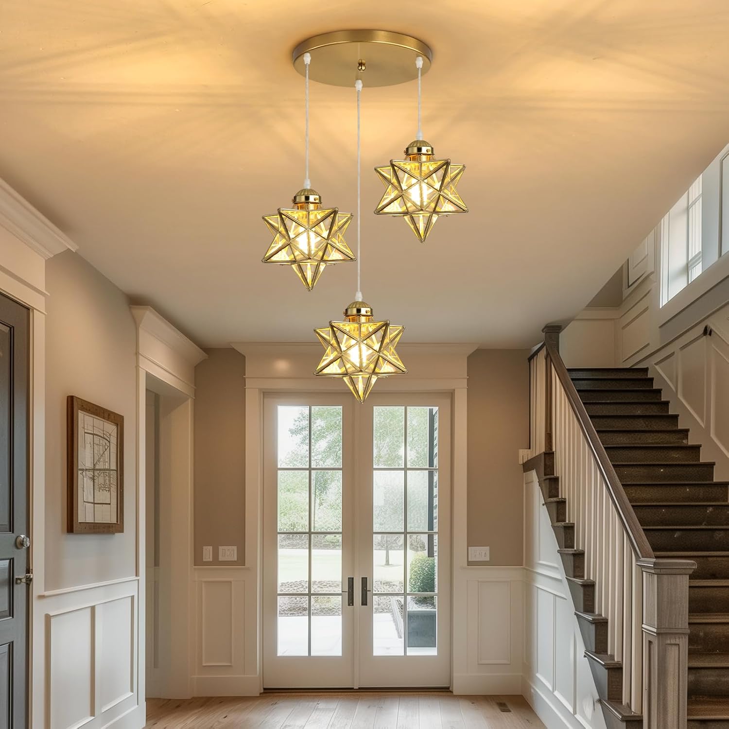 YLKP Pendant Light Frosted Glass LED Ceiling Chandelier Gold Lighting Fixture with Warm Light for Kitchen Dining Room Foyer Hallway