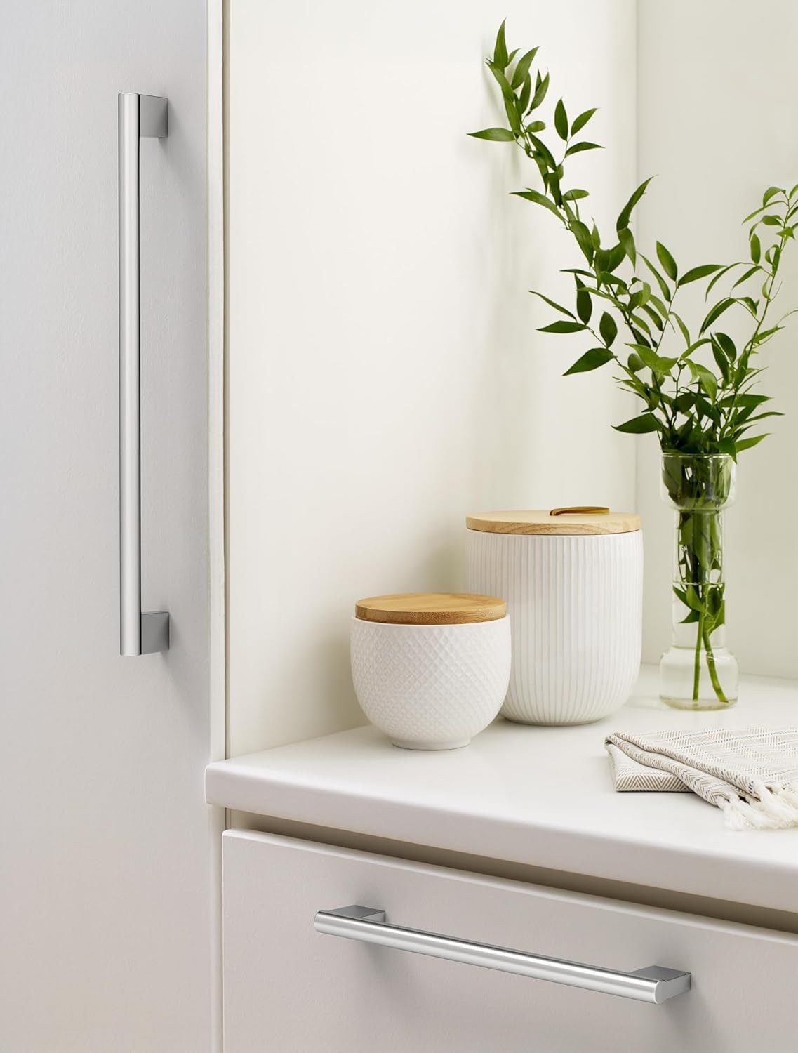 The Amerock BP5553526 Versa 18 inch (457mm) Center-to-Center Appliance Pull is finished in Polished Chrome. Straightforward and streamlined, the Versa collection brings an understated yet substantial feel that is both modern and timeless. With its shimmering mirrorlike nature, the slightly cool blue undertones of chrome enhance the surface of any product. Founded in 1928, Amerock’s award-winning home solutions including decorative and functional cabinet hardware, bath accessories, decorative hooks and wall plates have built the company’s reputation for chic design accessories that inspire homeowners to express their personal style. Amerock offers a variety of styles and finishes at affordable prices that add the perfect finishing touch to any room.