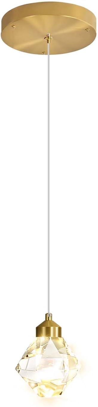 Crystal Pendant Light for Kitchen Island,Gold Chandelier Lights Fixture, Hanging Lighting Ceiling Light Fixture Modern Adjustable Pendant Lighting for Dining Room Bedroom