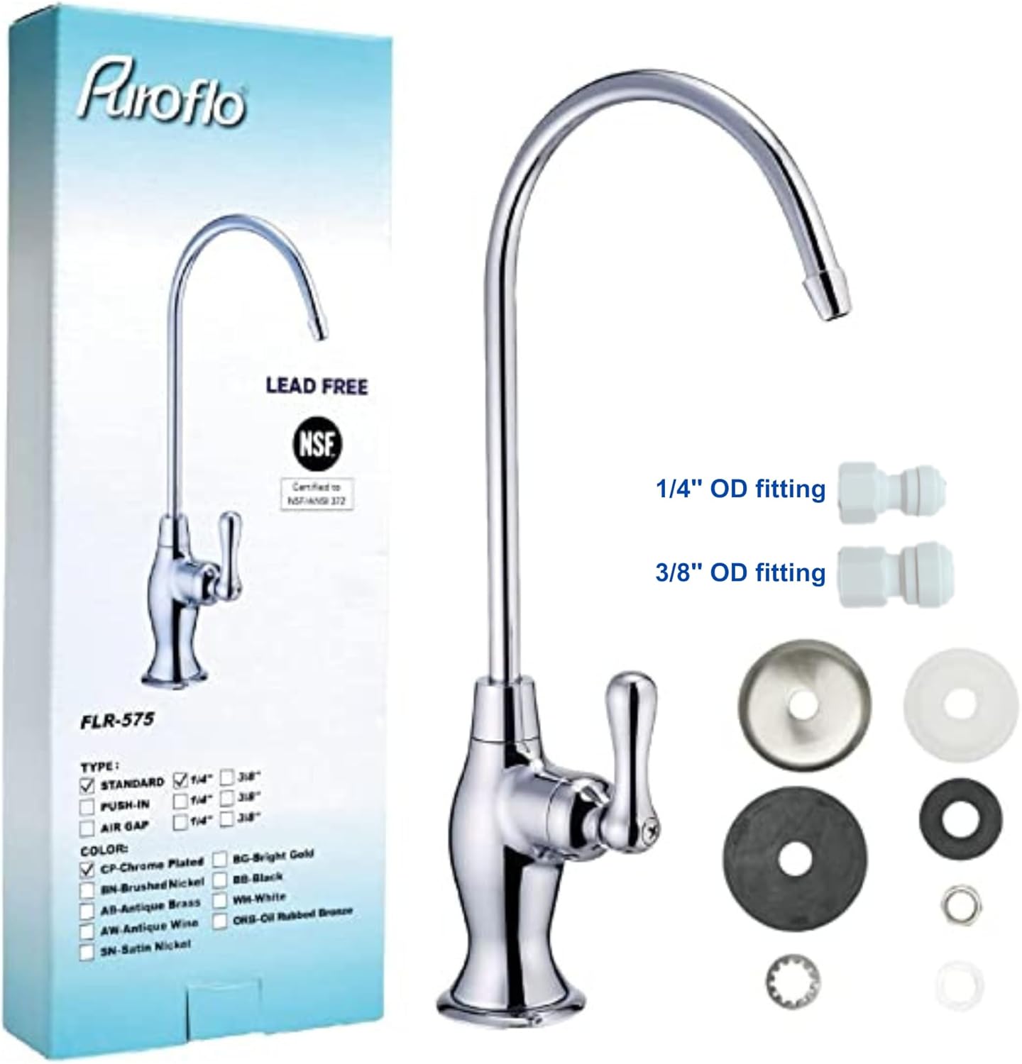 | Included Components | 1/4” OD and 3/8” OD Quick Push-in Fitting and Other RO Faucet Parts (Base Plate, Rubber Washer, Bottom Pad, Bottom Washer, Metal Washer, Lock Washer, Hex Nut) |