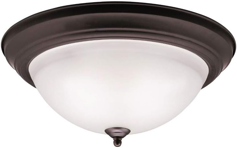 The current and pleasing lines of this flush mount ceiling fixture done in Brushed Nickel finish with Satin-Etched Glass will blend into many decors. 2-Light, 60-W Max. (M). Diameter 11 1/2in., Height 6 1/2in..