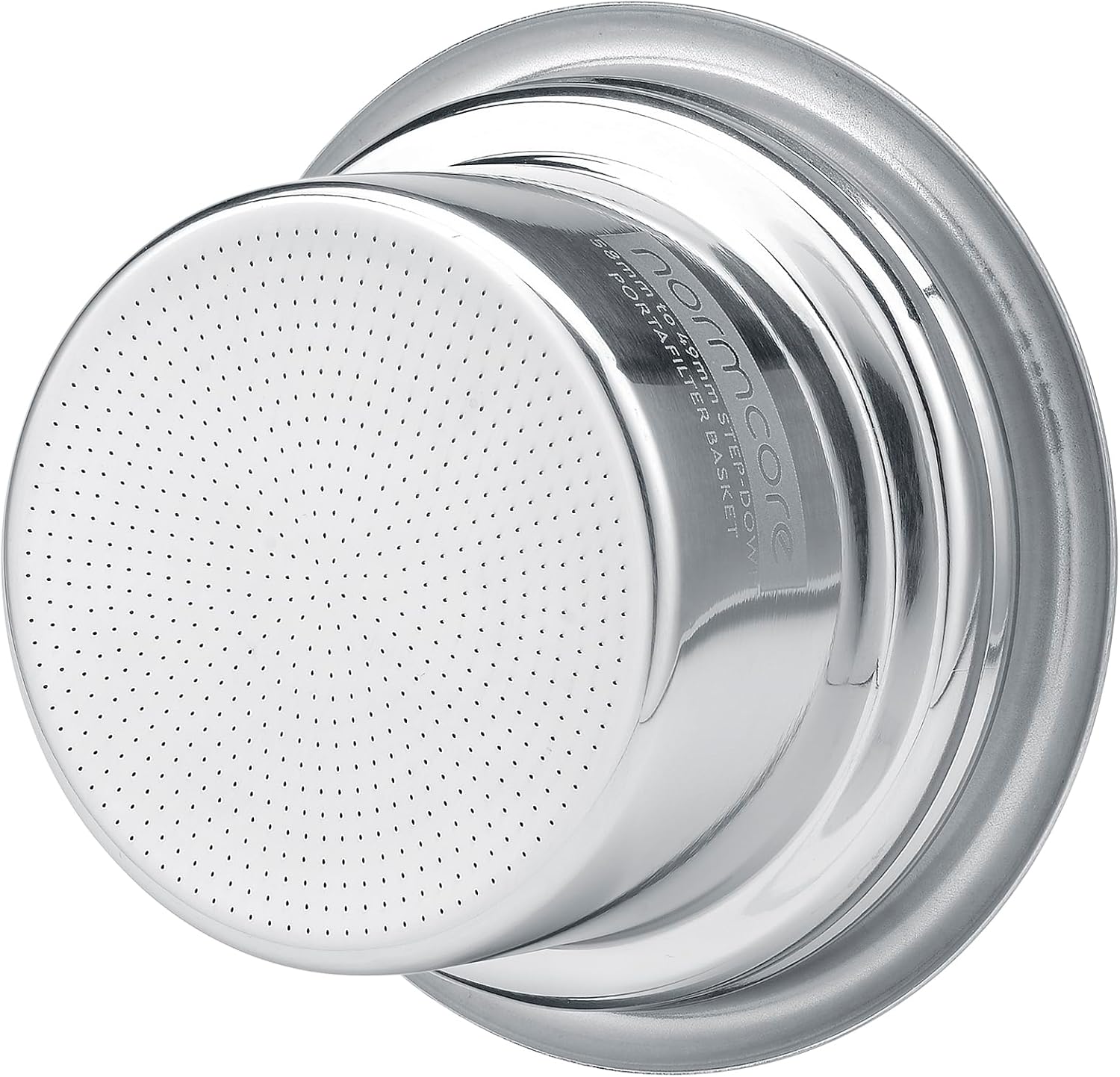 Set your 58 mm espresso machine free—without rebuilding your setup. The Normcore Step-Down Portafilter Basket reduces puck diameter to 49 mm, creating a narrower coffee bed and a gentler, more forgiving flow profile for cleaner, more even extractions. A tapered interior guides water evenly, while 0.28 mm (High-Flow) laser-perforated holes provide fast, repeatable distribution and higher cup clarity—especially friendly to light/medium roasts.Because this basket is deeper than typical 58 mm baskets, it fits bottomless/naked portafilters only. To speed up your first dial-in, the kit includes the essentials for a complete 49 mm workflow: 49 mm dosing funnel, 49 mm 0.8 mm puck screen, retaining spring sized for the 58→49 setup, and 200× 49 mm filter papers.Compatibility & Tamper Note- Bottomless-only fit (58 mm); not for spouted/pressurized types.- Check headspace with puck screen/spring; reduce dose if tight.-Use a 49 mm tamper with this basket (a 49.7 mm or 58 mm tamper will not fit). If you use the Normcore 58.5 mm spring-loaded tamper, you can purchase a 49 mm base and baffle separately.What’s in the Box1× Step-Down Portafilter Basket 1× 49 mm Dosing Funnel1× 49 mm Puck Screen (0.8 mm)1× Spring for the 58→49 Basket200× 49 mm Filter Papers