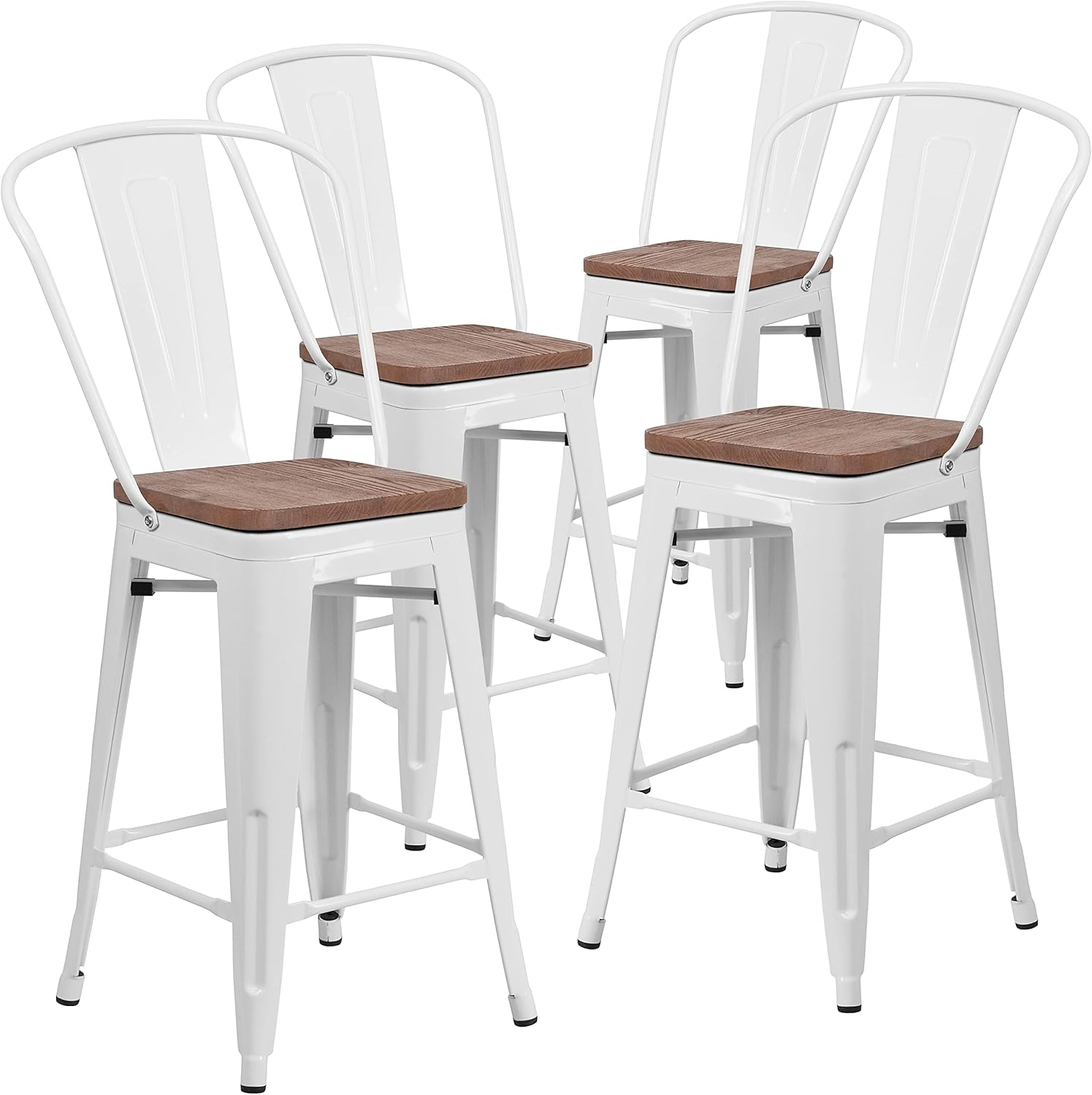 Give yourself a leg up on other seating with this Bistro style counter height stool. This cafe chair will give your dining room, kitchen counter or eatery a refreshing rustic feel with its metal and wood features. This stylish metal stool features a curved back with a vertical slat and a cross brace under the seat for added support and stability. A wood seat adds comfort and beauty. The lower support brace doubles as a footrest, and the glides protect your floor by sliding smoothly when moving it. Designed for both commercial and residential use, this trend-setting colorful counter height stool is a great choice for your restaurant's dining or bar area or use this contemporary dining chair at home in your kitchen, dining room or home bar.