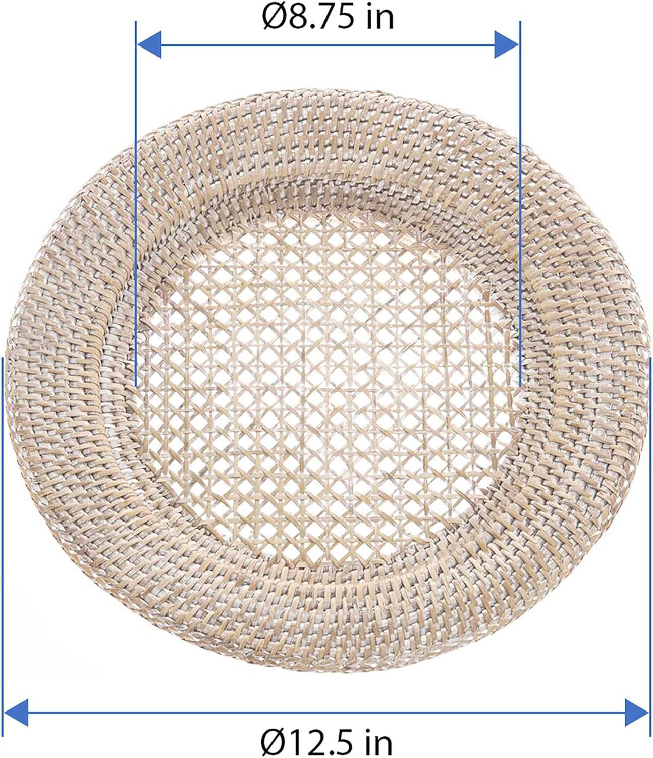 Give your table setting some coastal flair with these charger plates. Woven from rattan and stained in a cool White Wash Your tablescape will shine whether set for family or friends.
