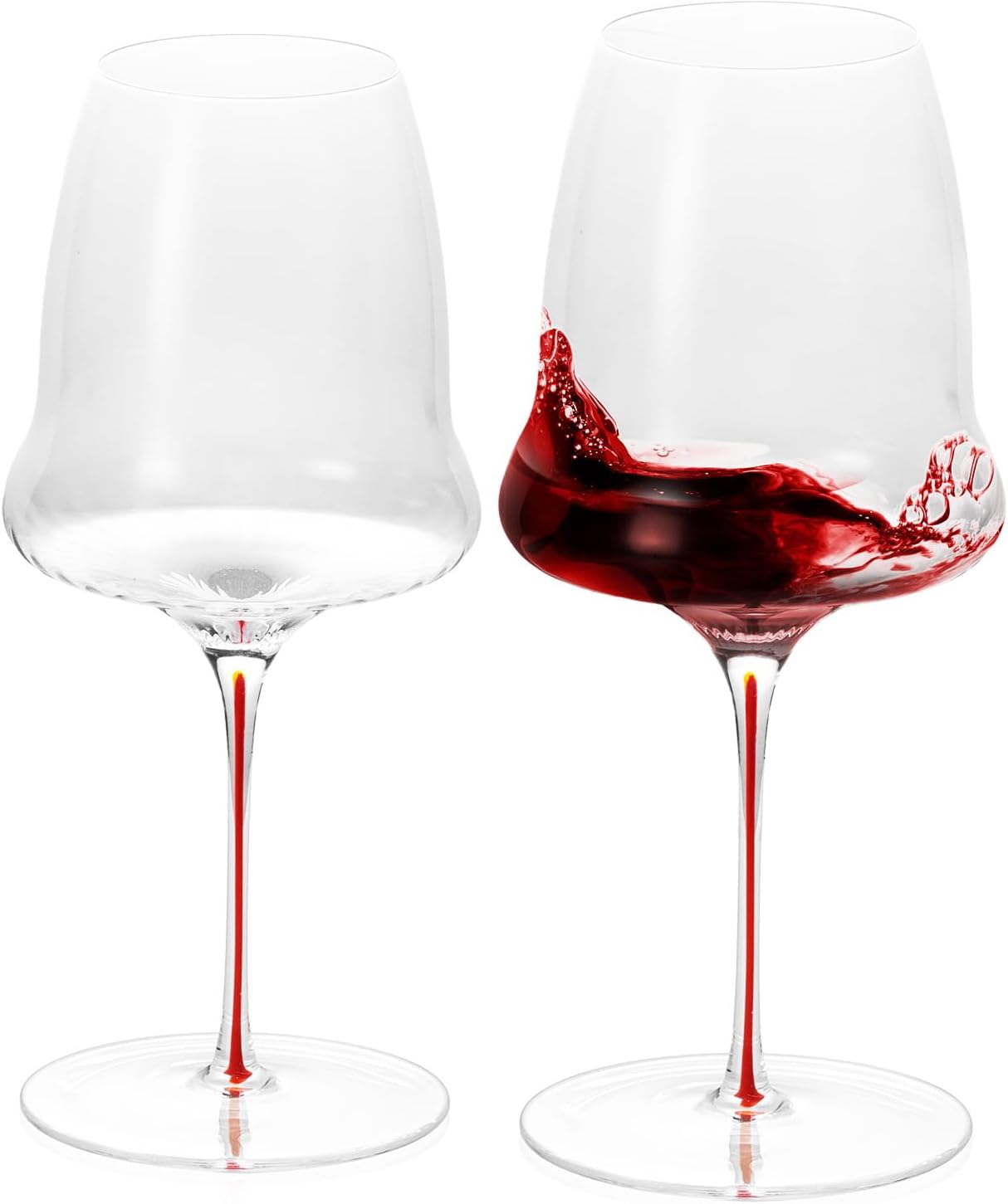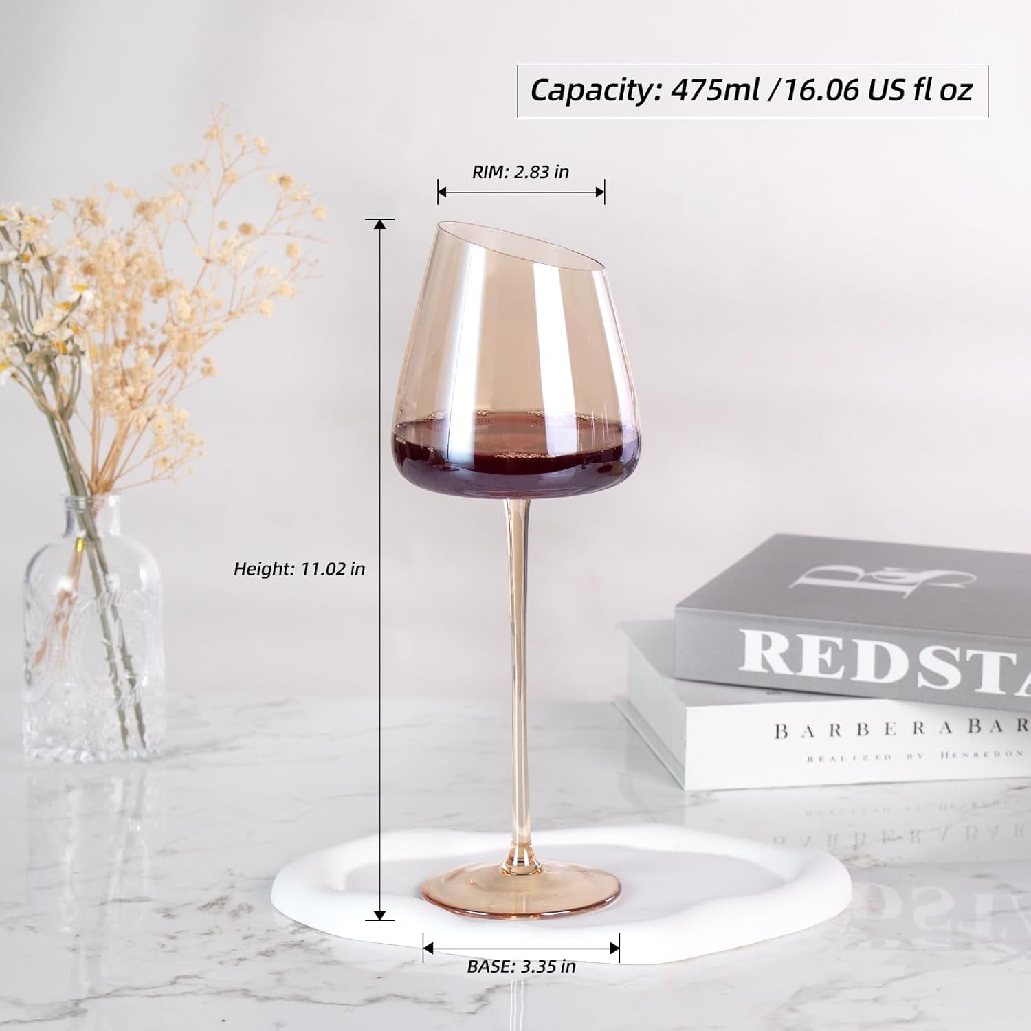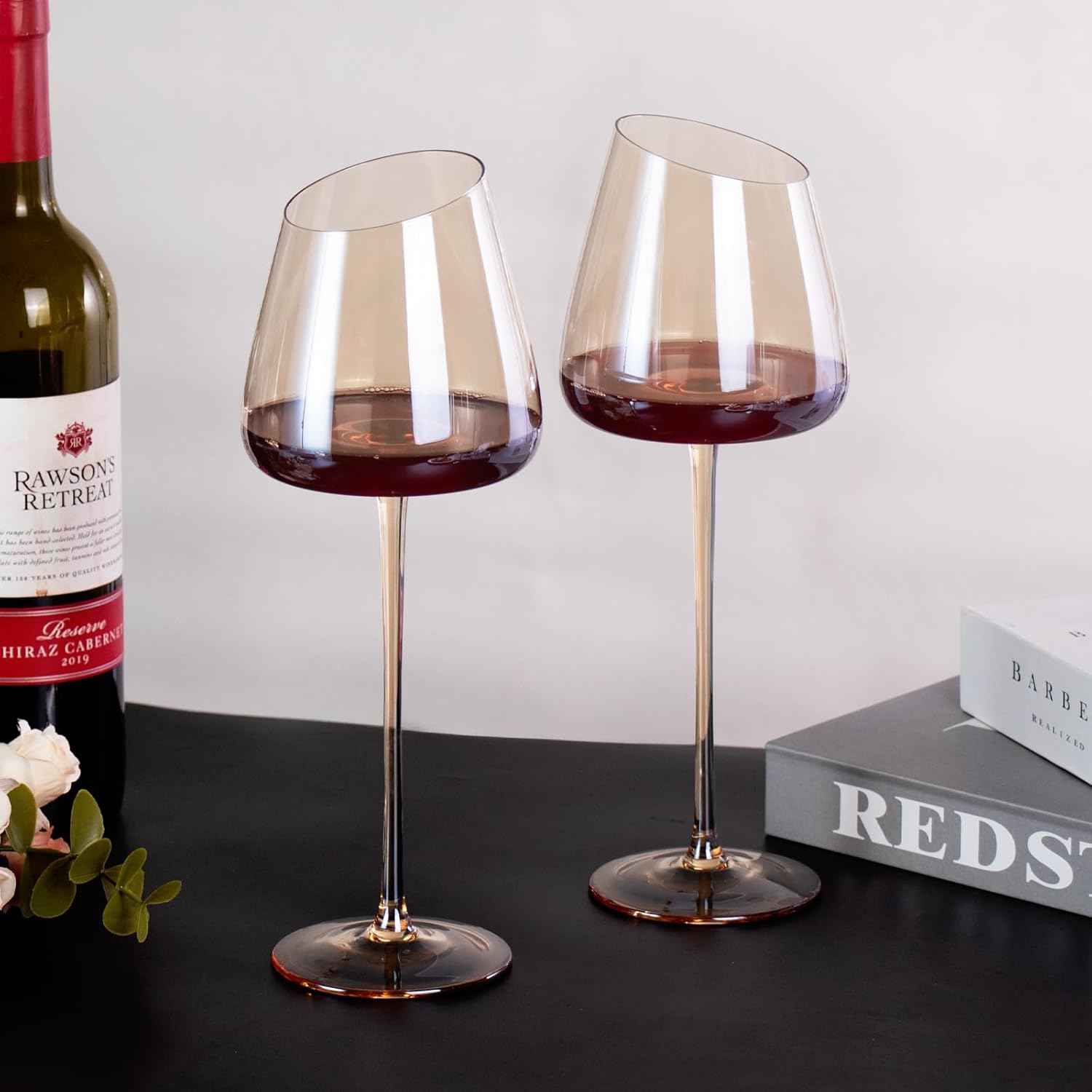 KAMMAK Wine Glasses Set of 2, 16.06 oz Hand Blown Crystal Bordeaux Wine Glasses, Thin Rim & Long Stem, Perfect for Red & White, Daily Use, Wedding or Birthday Gift with Gift Box, XH-H280 Amber