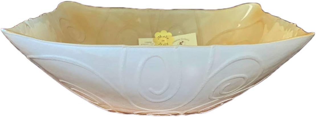 European Murano Glass Centerpiece Bowl Ivory Floral Design Modern Handmade Blown Glass HIEST QUALITY - ihis beautiful glass square bowl features a unique swirled texture on the exterior. Its smooth interior displays an elegant floral design, perfect as a stand alone decor peice. ITALIAN ARTISTRY - this elegant Centerpiece Plate will create a one of a kind interior design style to make your home stand out. It can also be used for food service for elegant entertainin. This exquisite centerpiece plate is the perfect gift for your family, friends and clients for all occasions including Birthdays, Weddings, Anniversaries and Corporate gifts. Hand washing is recommended for longer life and durability. MADE IN ITALY Bowl is : 4 inches High; 12 inches Lengt; 12 inches Width