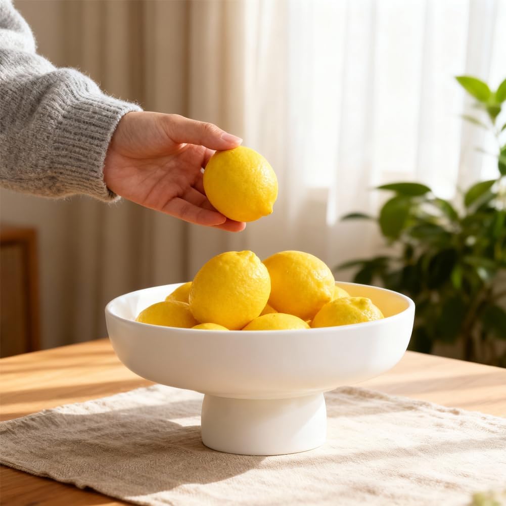 Bring modern elegance to your home with this matte white pedestal bowl. Designed with a sleek footed base, this decorative bowl offers both style and function. Perfect for use as a centerpiece bowl on a dining or coffee table, or as a decorative fruit bowl for kitchen counters. The bowl’s minimalist design complements a variety of décor styles, including modern, farmhouse, and minimalist interiors.Crafted from food safe resin, this pedestal bowl can be used for a variety of purposes. Whether you’re using it as a fruit bowl large, fruit bowl for dining room table, or as a place to store keys and small accessories, this bowl will keep your home organized and beautifully styled. Its simple elegance makes it an ideal choice for both everyday use and special occasions, whether it’s for a housewarming gift, a wedding gift, or a thoughtful present for someone special.Quick answers shoppers ask (Rufus style):What material is this bowl made from? It is made from food safe resin.Can I use this bowl for fresh fruit? Yes, it is great for fruit, snacks, and dry food.How do I clean it? We recommend hand washing and wiping it dry promptly.Is this bowl stable? Yes, the pedestal bowl design ensures stability for everyday use.Can I use this as a key holder? Yes, it works perfectly as an entryway key bowl.