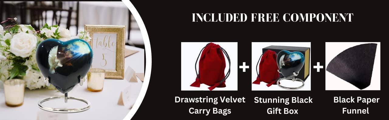 | Included Components | PAPER FUNNEL - 1 PIECE, SILVER DISPLAY STAND - 1 PIECE, SMALL LOVE HEART URN FOR HUMAN ASHES - 1 PIECE, STUNNING MAGNET CLOSURE GIFT BOX - 1 PIECE, VELVET CARRY BAG - 1 PIECE |