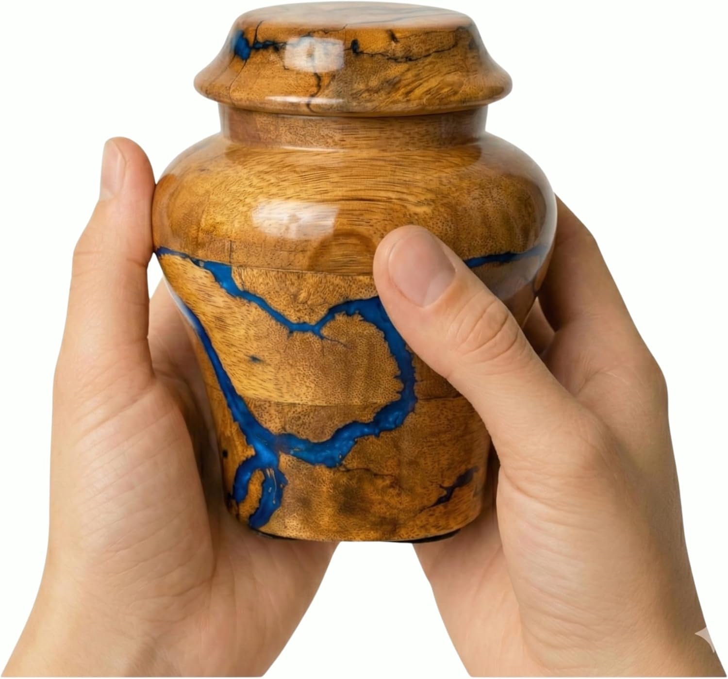 Crafted with meticulous attention to detail, this handmade wooden urn is a testament to the artistry of skilled craftsmen. Exquisitely carved from premium wood, each piece is a unique work of art that exudes warmth and character. Whether used as an urn for cherished remains or as a decorative vessel, this handcrafted wooden urn adds a touch of elegance and timelessness to any setting. With its natural beauty and superior craftsmanship, this urn is a treasured keepsake that will be passed down through generations. Embrace the beauty of handcrafted artistry with this exceptional wooden urn.