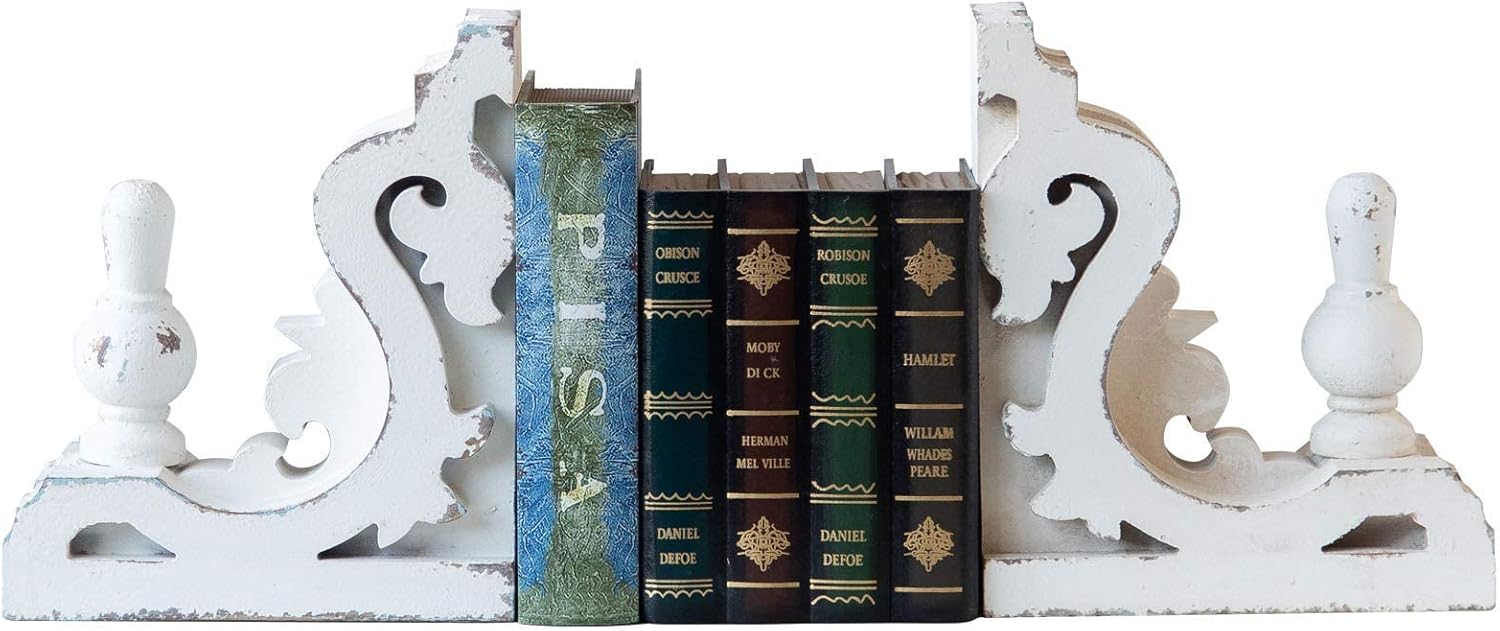 You will love these bookend or wood corbel decor that are meticulously designed and made to reflect an aged, antique and rustic beauty. This heavy duty bookends ensures that your books are organized.It can be used in any space that needs farmhouse decoration in the home or office, or use singly as a decorative accent.Colors: whiteMaterials: Medium Density FiberboardDimensions: 10.8 inches high x 9.4 inches long x 4.3 inches wide