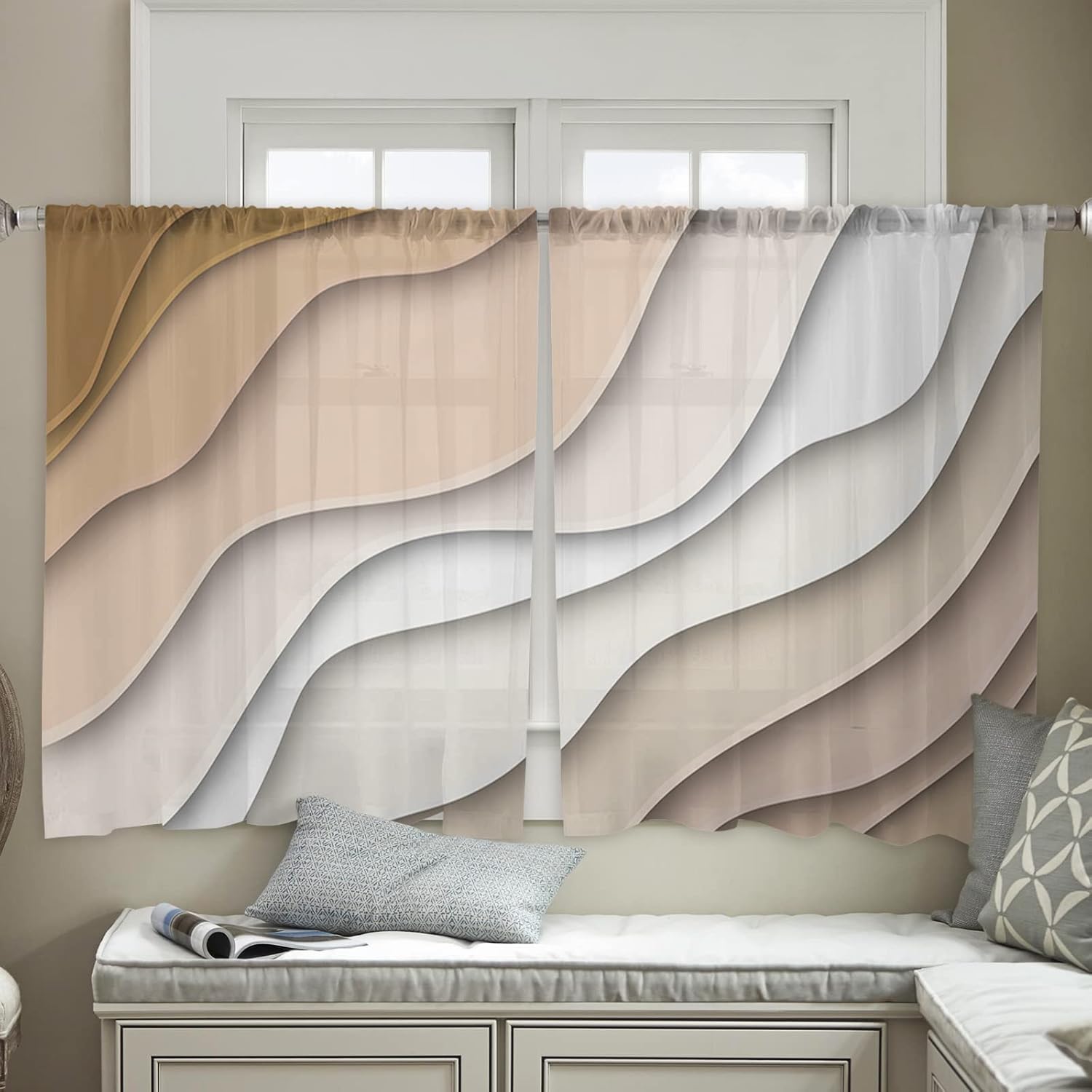 Available in 7 shelves curtains sizes to fit different window treatment:* 52"W x 45"H x2 Panel, total size is 104"W x 45"H* 52"W x 54"H x2 Panel, total size is 104"W x 54"H* 52"W x 63"H x2 Panel, total size is 104"W x 63"H* 52"W x 72"H x2 Panel, total size is 104"W x 72"H* 52"W x 84"H x2 Panel, total size is 104"W x 84"H* 52"W x 96"H x2 Panel, total size is 104"W x 96"H* 52"W x 108"H x2 Panel, total size is 104"W x 108"HRV Window Curtains Feature:* Supreme Stylish Style & High Quality Sheers----Luxurious 100% polyester voile fabric* The Perfect Balance of Privacy and Sunlight----Clear image print is in one side, let air and sunlight filtering while protecting your privacy* Durable----Never rip, snag, pull or loose thread.* Fully Stitched & Hemmed on all edges----Carefully sewn that allow the panels to drape beautifully over your windows.* Rod Pocket Top Design Privacy Curtains----Ready To hang, Fits curtain rods up to 4" inch* Easy to Care----Machine and dryer washableAvailable in extra wide curtains up to 108" inch wideWhat You Get?* 2 Panels Curtain* We provide full after-sales service. If you have any questions, please contact us directly and we will try our best to solve them. looking forward your message.Warmth Tips* To achieve full window coverage, please use two panels for a standard-size window. * For Rod Pocket: We suggest that you choose a curtain width of a 1.2-1.8 times wider than the width of the curtain rod or track to create folds. So that can cover the whole window and look more beautiful.* The above data is manual measurement, there is an error of 0.8-1.6 inches. Please understand, thank you!