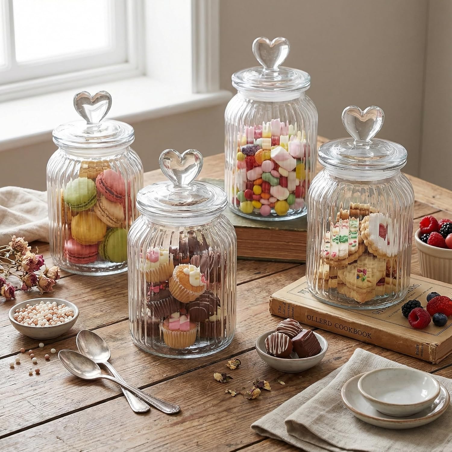 | Included Components | 4 Set glass jars with heart lids |